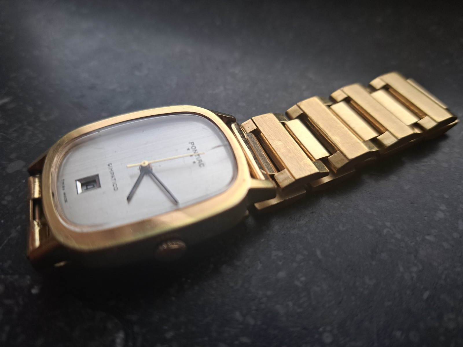 Tropic groen zijn van de jaren ‘70. Klopt niet met Pontiac’s uit de jaren ‘60. Mooie horloges, zeker, maar zooits aarmbanden geven geen meerwaarde. Niet voor de kenners.