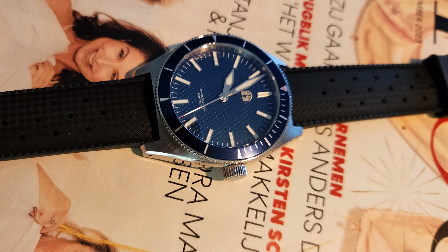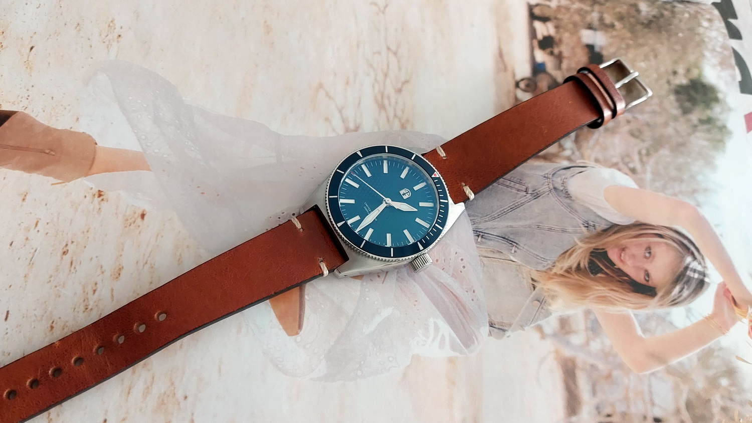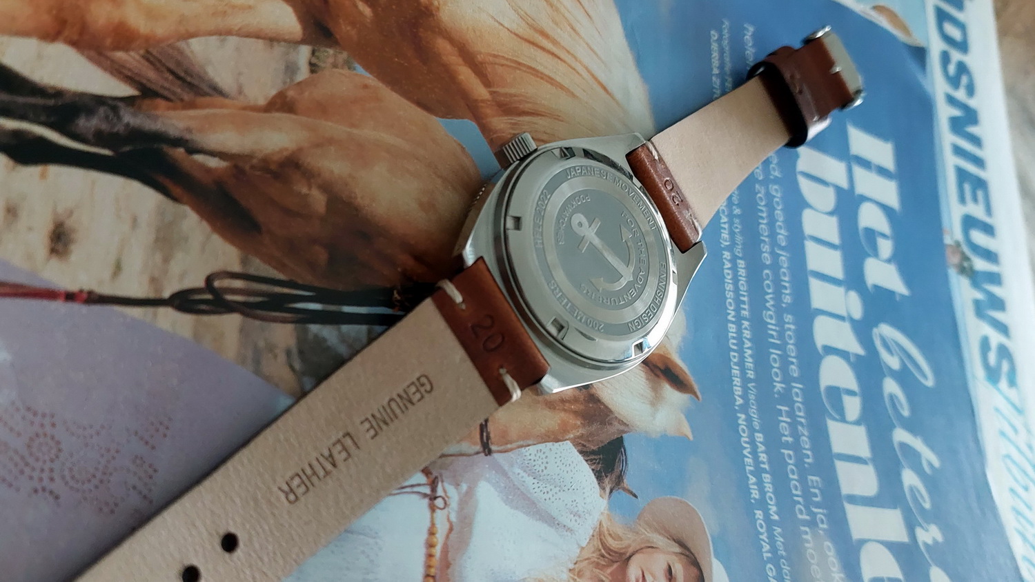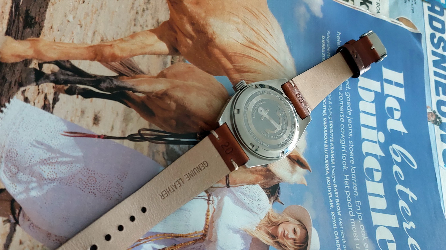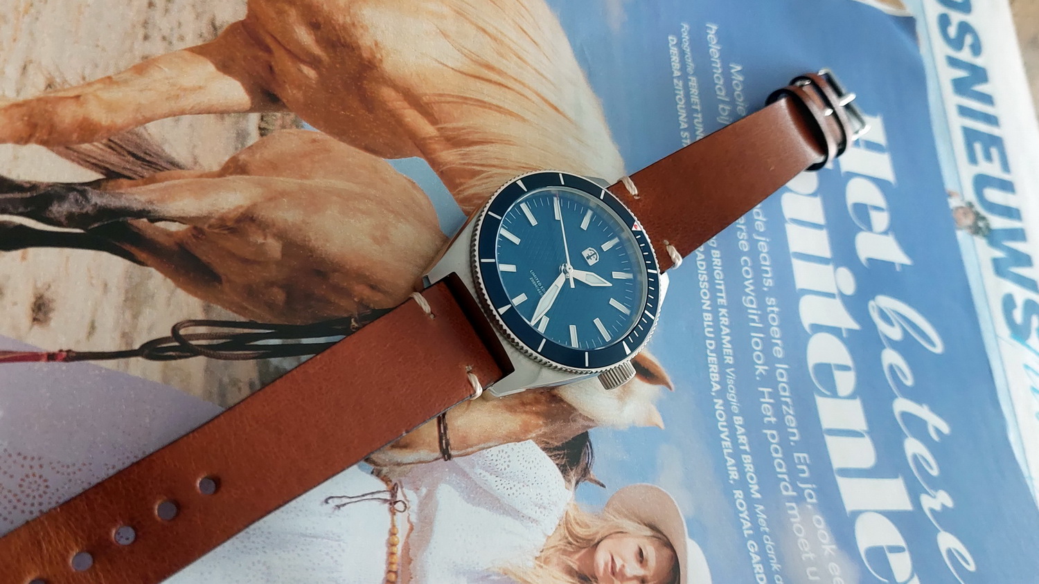Ook dit horloge is een waar strapmonster. Als voorbeeld een aantal foto’s met andere bandjes (worden niet met het horloge geleverd). Al met al een heel mooi en zeer goed gemaakt horloge.