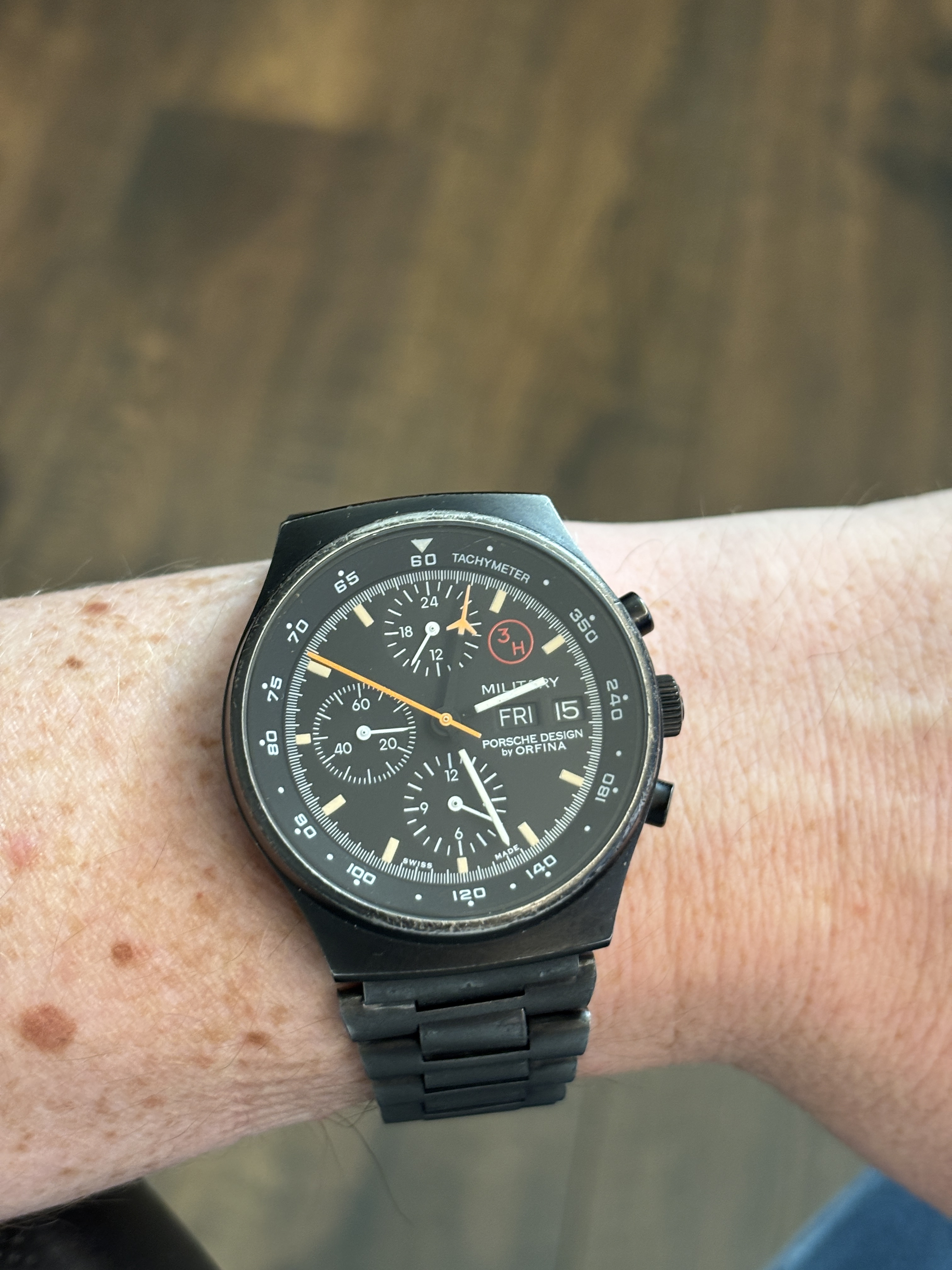 I’ve recently bought this old Porsche Design watch and couldn’t find anything on it on the Internet. For one, it doesn’t have the “IWC” logo with it, it also doesn’t have the signed fish crown, and for another, it says “SWISS ETA” at 6:00. Opening the caseback (stainless rather than, what I would expect as aluminum?) it has an ISA 317 movement:thinking:. Is it correct to assume that all early Porsche Design watches should have IWC on the dial or is this what I think it is: An early Porsche Design fake (hence the reason I cannot find anything on it?). TIA.