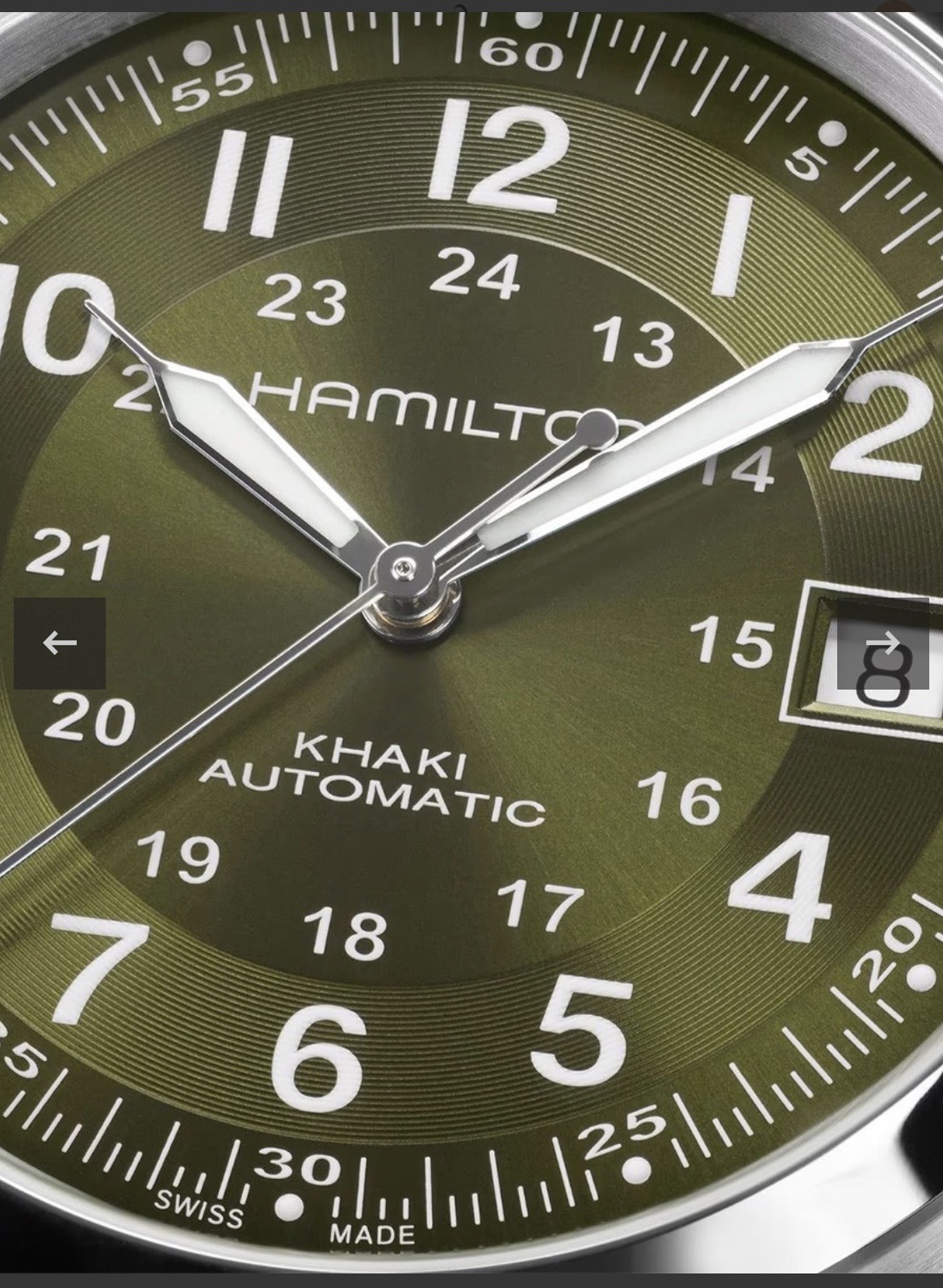 De Hamilton khaki field auto met het H10 uurwerk (80uur gangreserve)