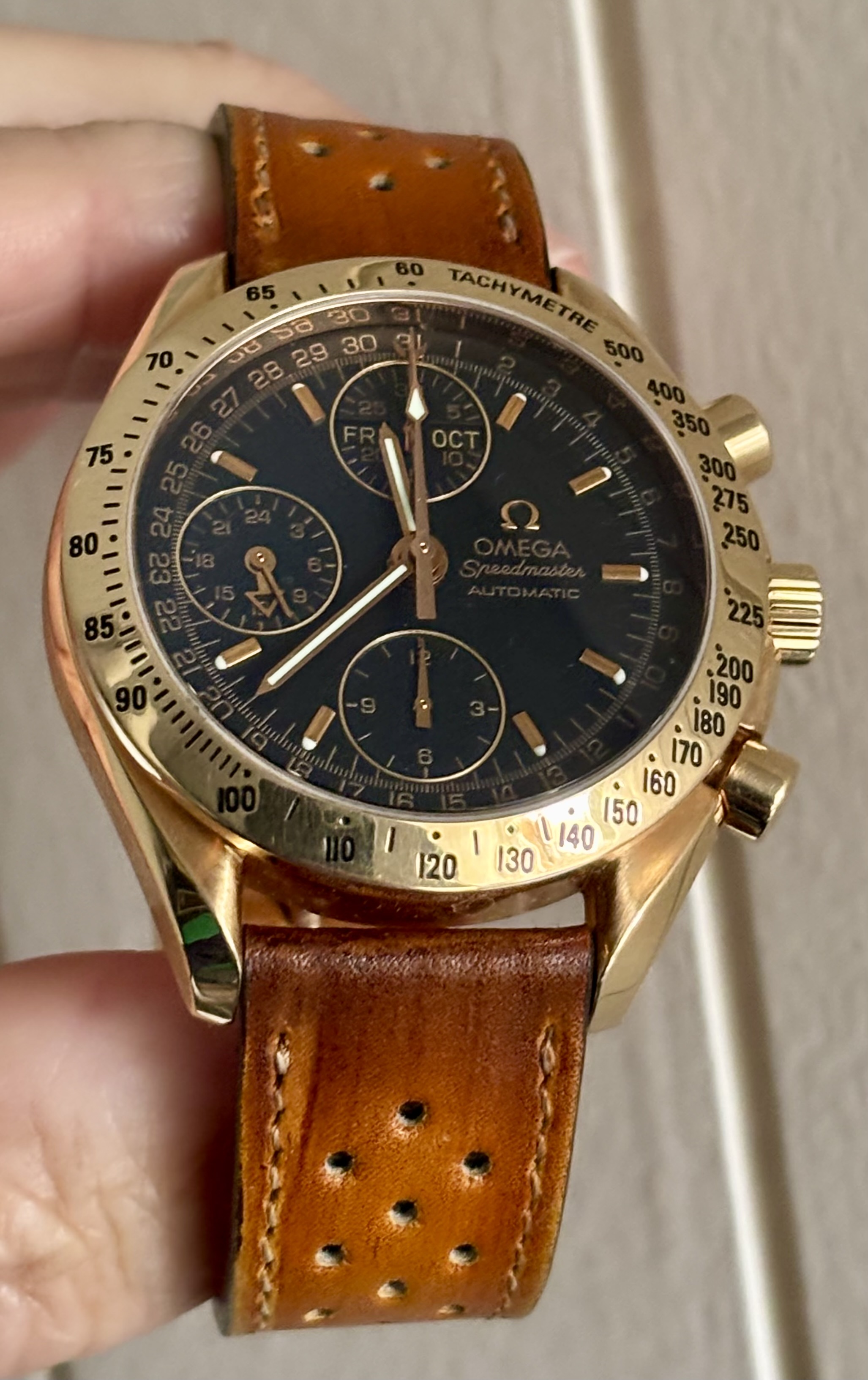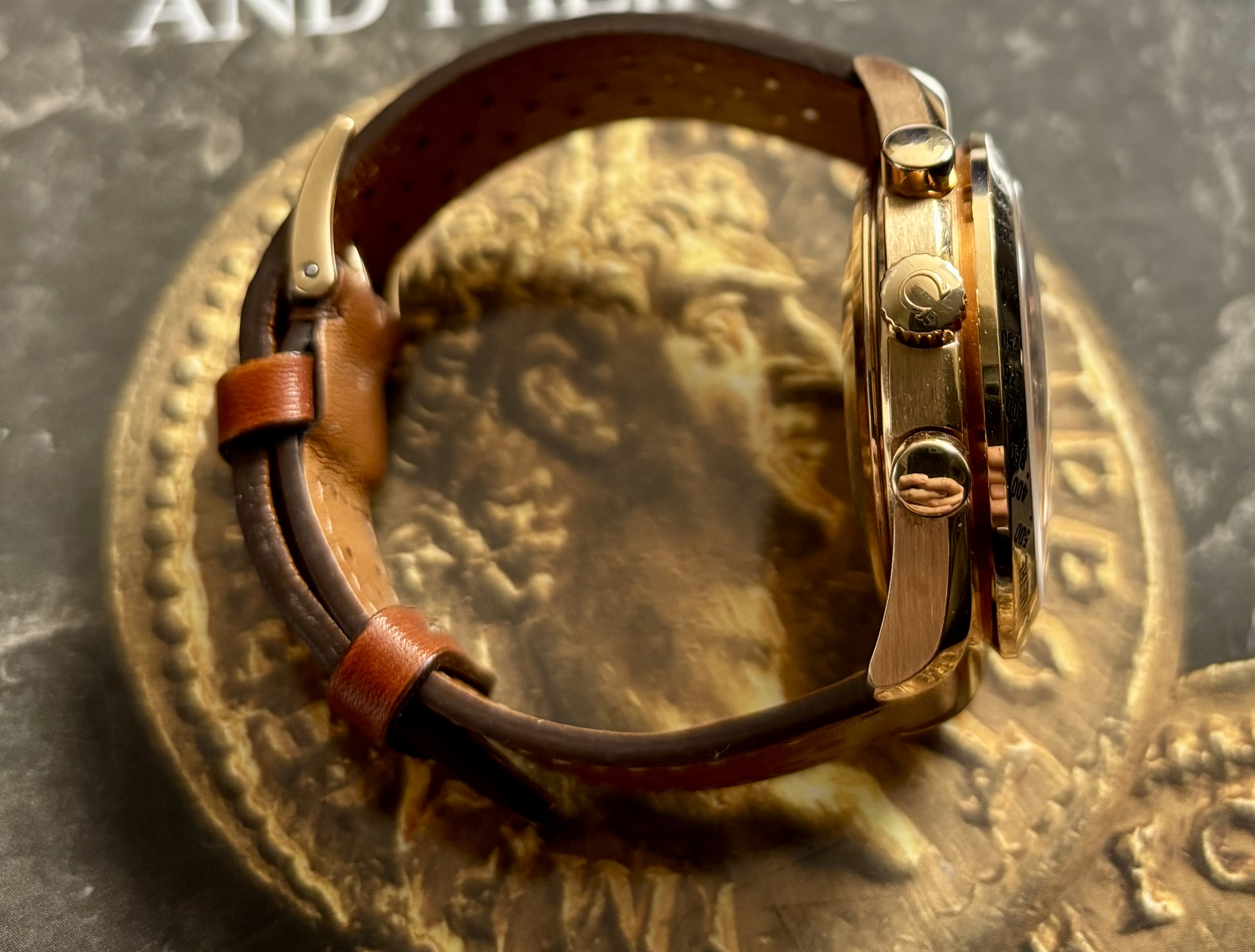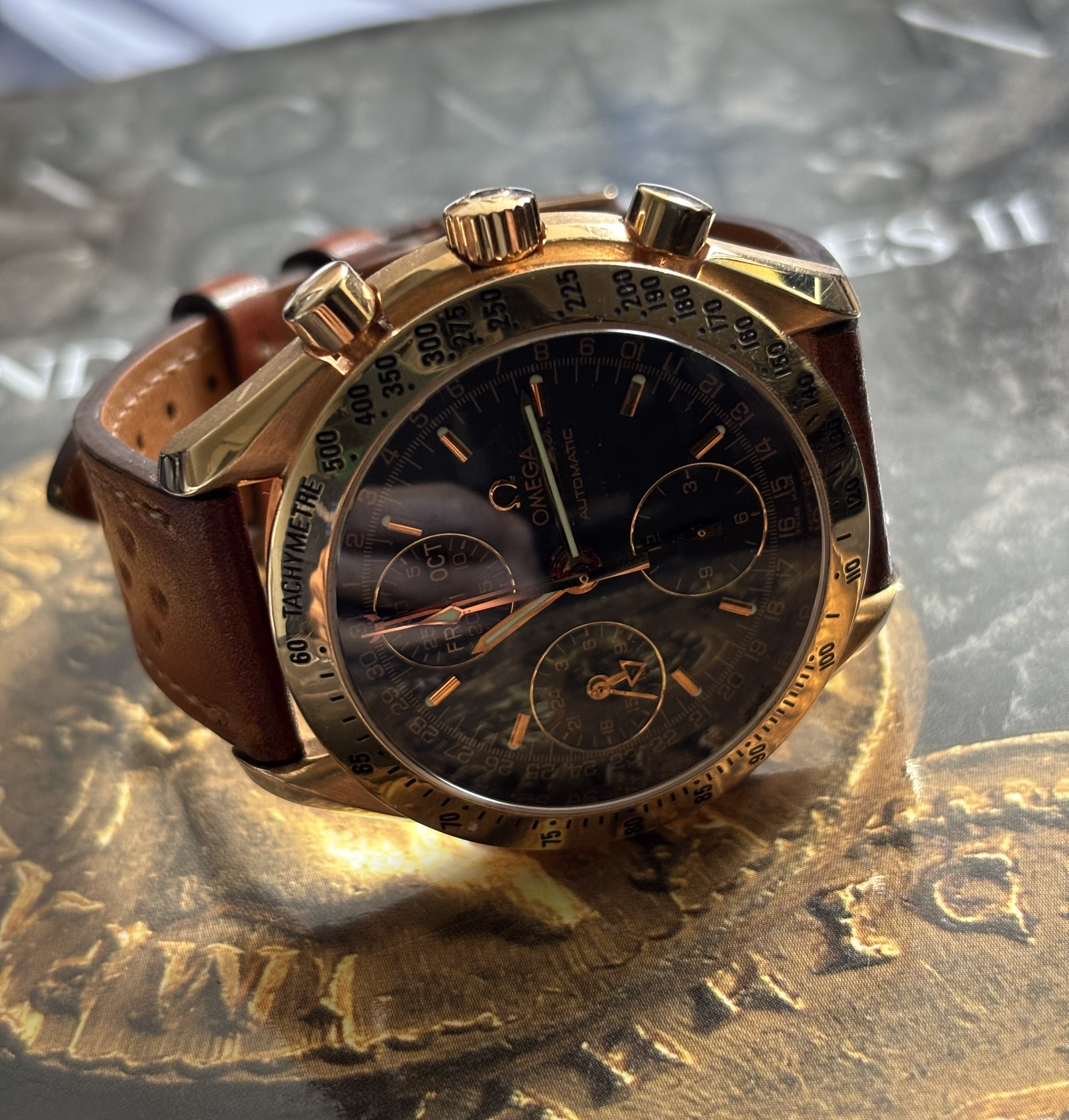 Fantastische, zeldzame en uiterst draagbare 39mm 18K Gouden Speedmaster!