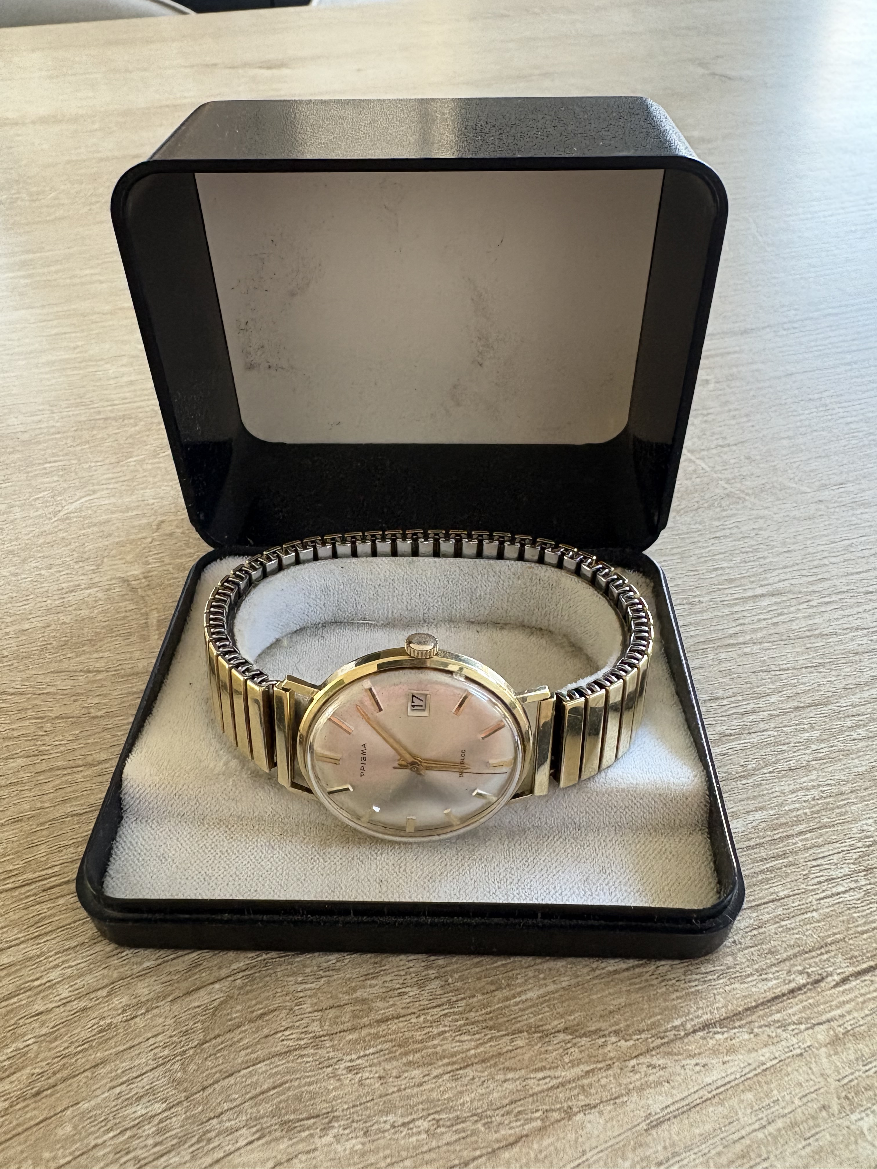 Goedemiddag, ook ik heb een erfstuk gekregen. Hij doet het nog uitstekend en is in goede staat. Is de buitenkant van het bandje ook van goud? En kunnen jullie mij vertellen wat het ongeveer waard is?