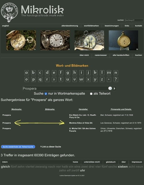 Op het uurwerk is het Edox logo te zien. Prospera is sinds 1970 onderdeel van Montres Edox, zoals in het horloge merkenregister is vermeld: