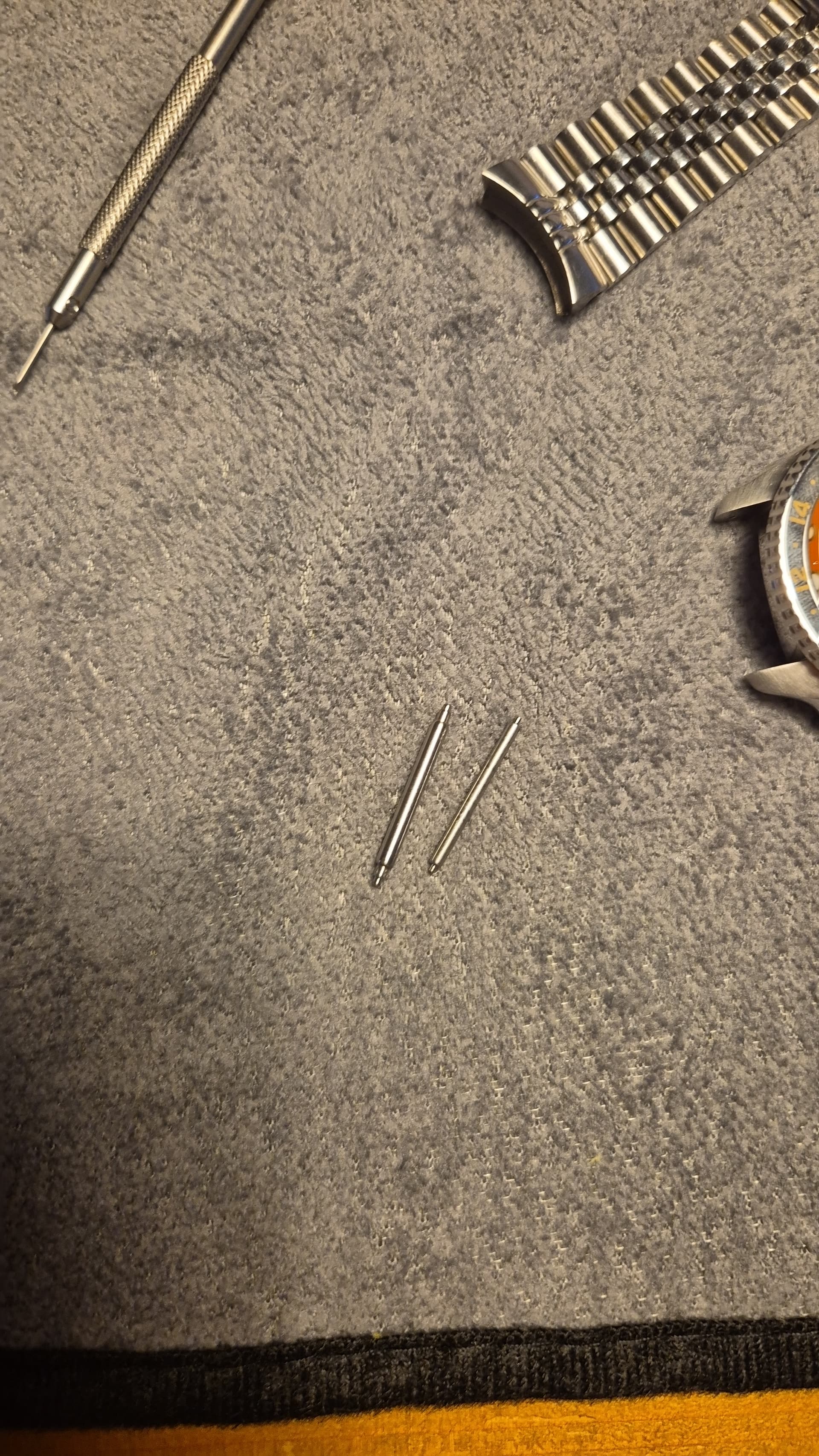 Zie onderstaande foto, ik heb een combinatie van de 2 nodig, namelijk dikke ‘schacht’ (links, miltat band), met de dunne pins (rechts, ssk band)