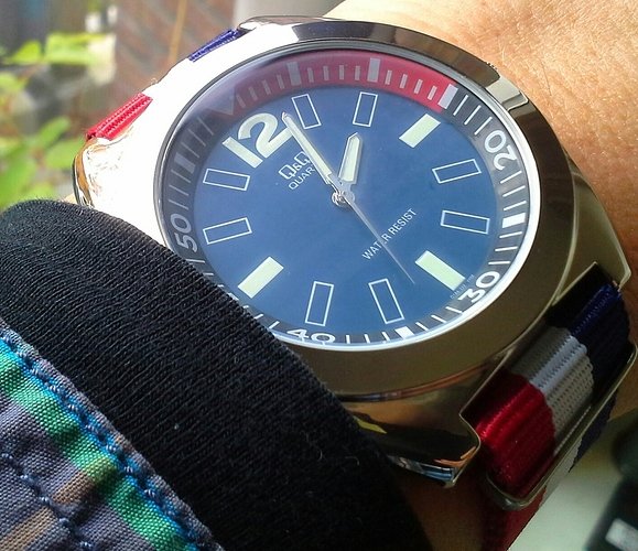 i.t.t. die laatste rood wit blauwe Q&Q daar zit een miezerig uurwerkje in, maar best geinig voor een dagje voetbal o.i.d.