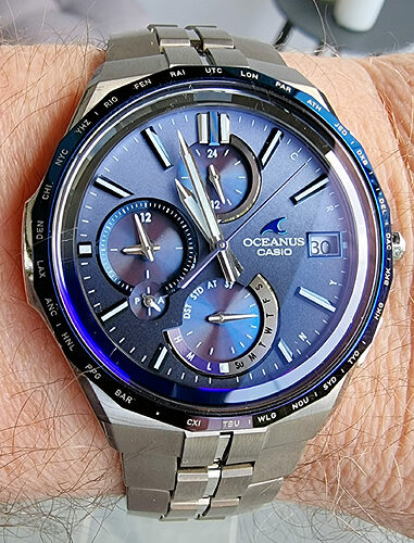 Nog platter en lichter dan de OCW 100, titanium en saffier. Moet je wel van meer complexe wijzerplaten houden natuurlijk. Valt nog net binnen je budget. Alleen JDM helaas