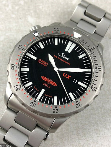 SInn UX met een ETA 955.652 (10sec per jaar), oliegevuld dus schokbestendig maar wel een vreemde secondenwijzer beweging. Een nadeel is dat deze enkel te vinden is in Duitsland waar ik dus voorlopig niet moet zijn…