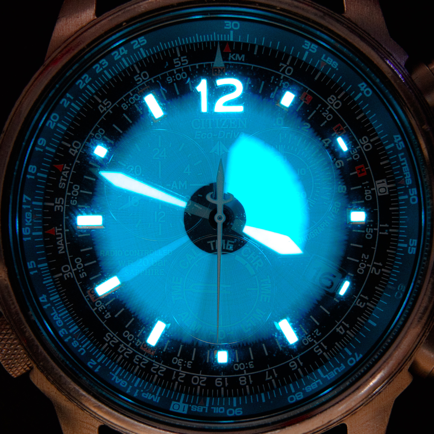 Verspringt bij die skyhawk de minutenwijzer trouwens ook maar 4x per minuut? Ik vind het er heel fascinerend uit zien. (erg zichtbaar bij een lange sluitertijd aan de gekartelde rand van de gloed die hij achterlaat.)