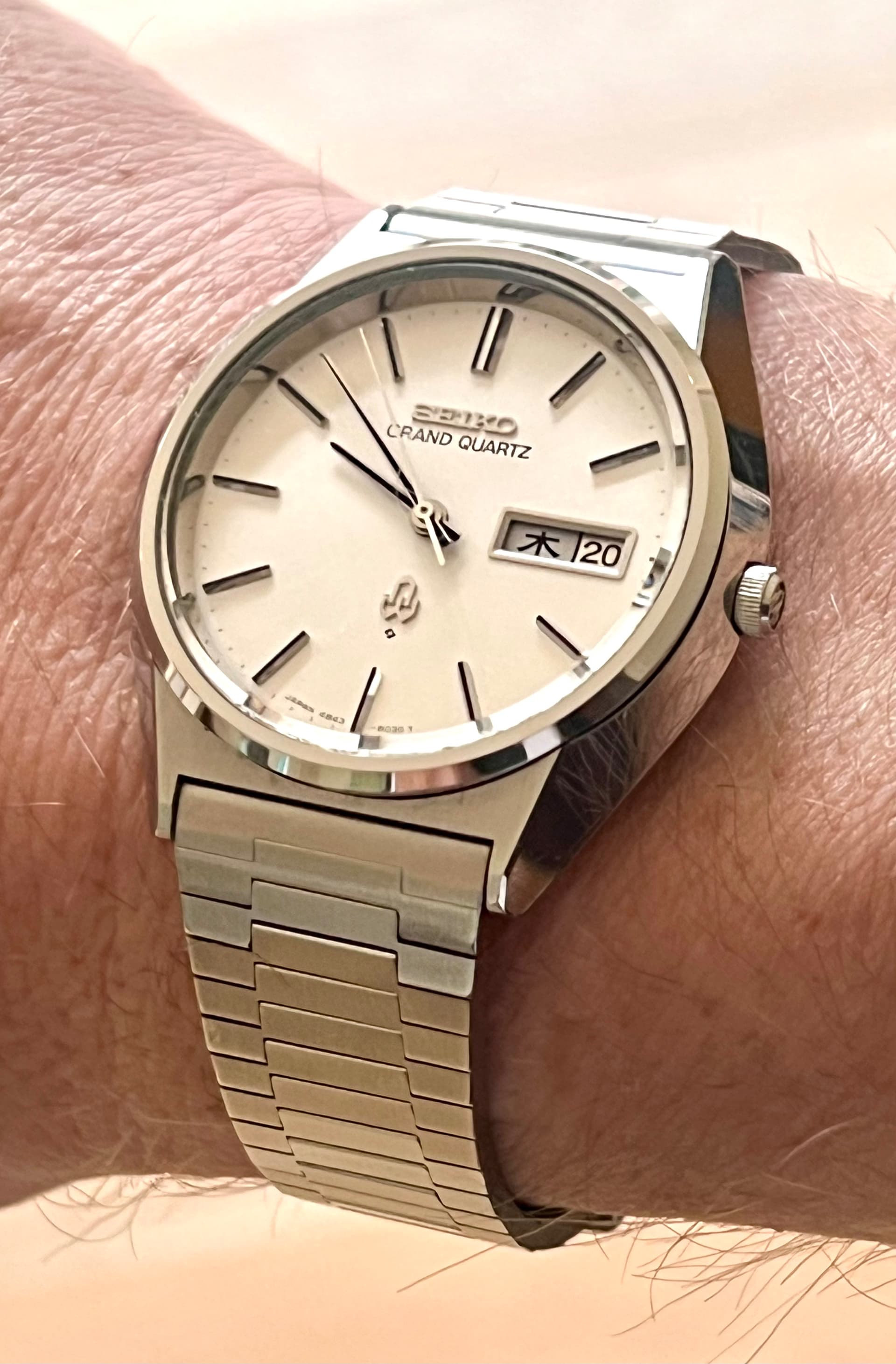 Ik ben een leuk verzamelingetje aan het opbouwen, nu zo’n 12 stuks. Te beginnen met een Grand Quartz 4843-8040. Gelukkig op origineel bandje.