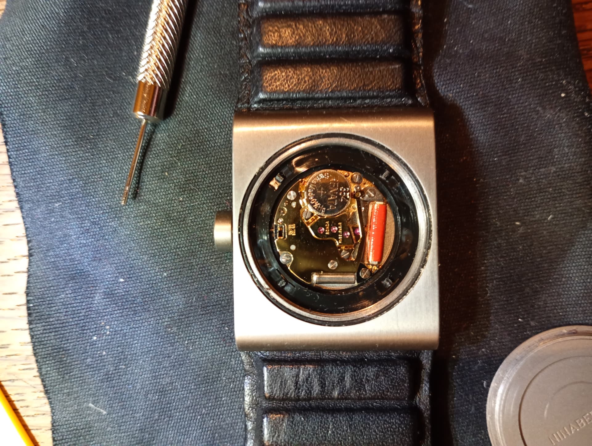 Overigens heb ik aan dit horloge al een paar honderd euro uitgegeven. Opnieuw polijsten en matteren vanwege diepe krassen (zeer driftige juwelier) ontstaan bij een batterijwissel. En een nieuwe band. Die investering heb ik zo’n vijf jaar geleden gedaan. Daarna heb ik het horloge niet meer gedragen. Dat de batterij leeg was, is dus niet echt een verrassing.