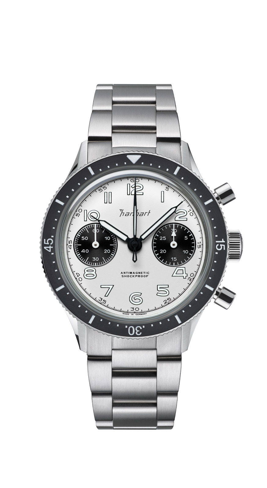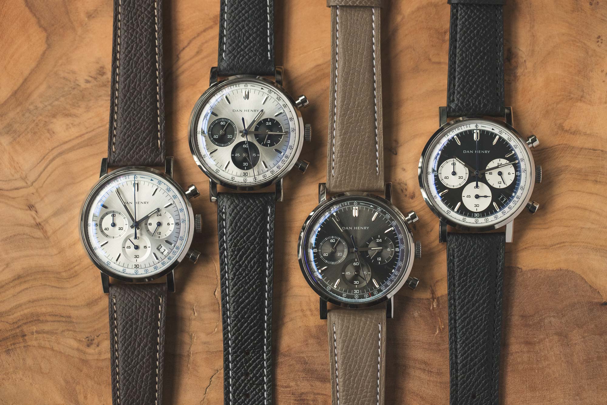 Zeg zo’n 2,500 euro maximaal, dus in de range van die Hanhart. De Baltic en de Hamilton zitten daar iets onder. De Dan Henry is een koopje vergeleken deze horloges.