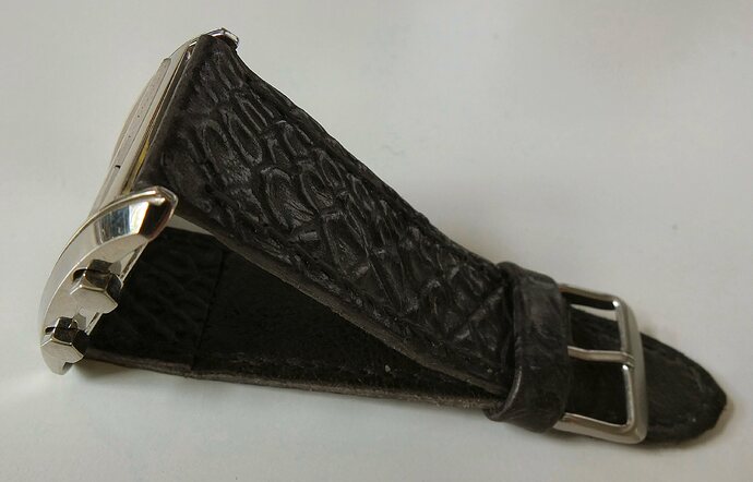 Het werd een zwart bandje van Oliekrokolizaroe leer, oftewel rundleer met een krokopatroontje.
