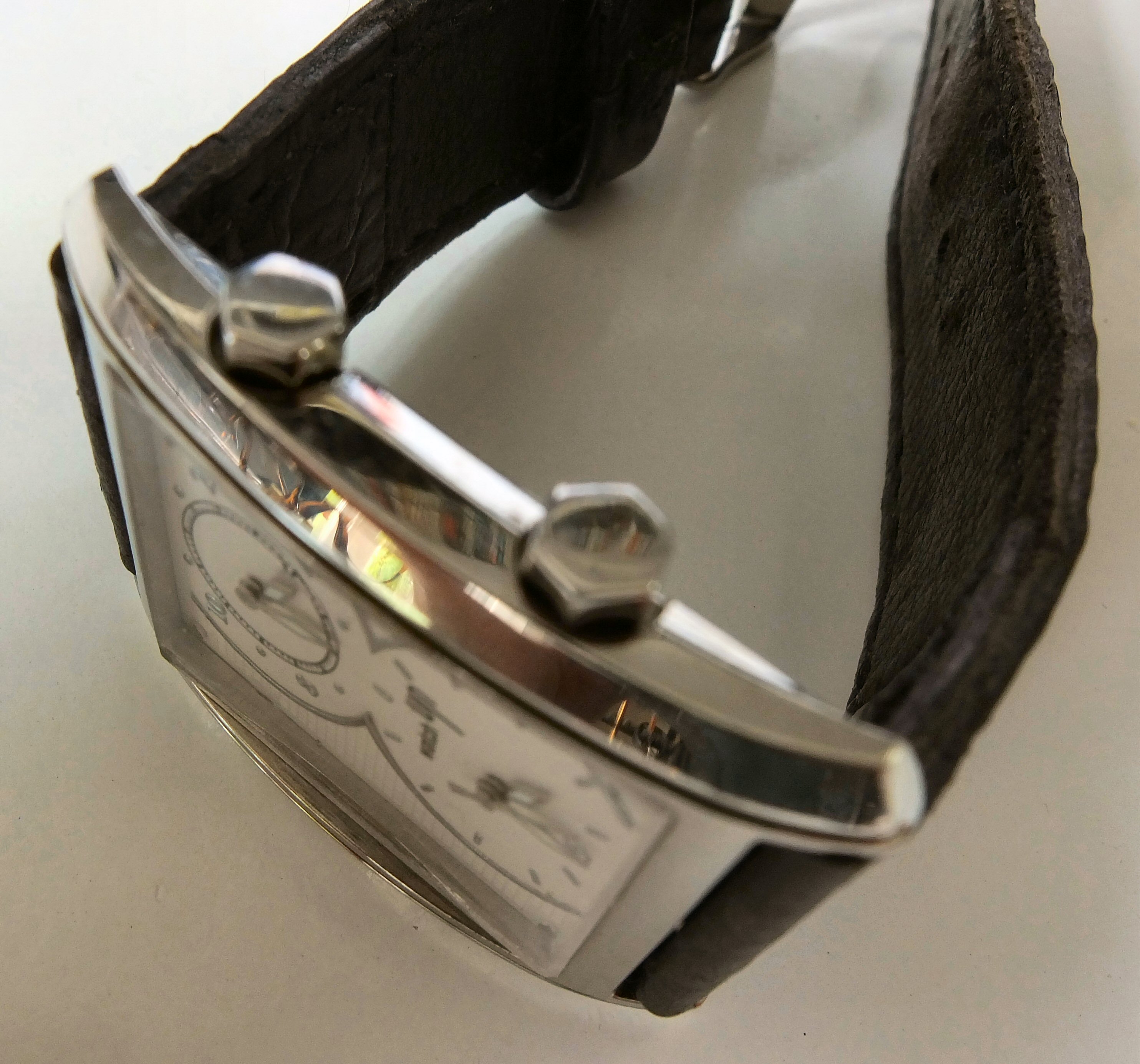 In dit geval was het resultaat verbluffend. De wijzerplaat was veel helderder zichtbaar en niet meer vervormd. Het feit dat dit glaasje niet bol was viel eigenlijk niet op omdat het geheel binnen de rondlopende zijkanten van de sponning van de kast viel. Overigens een RVS kastje, niet verkeerd voor een ‘fun horloge’ van ruim onder de 100 euro.