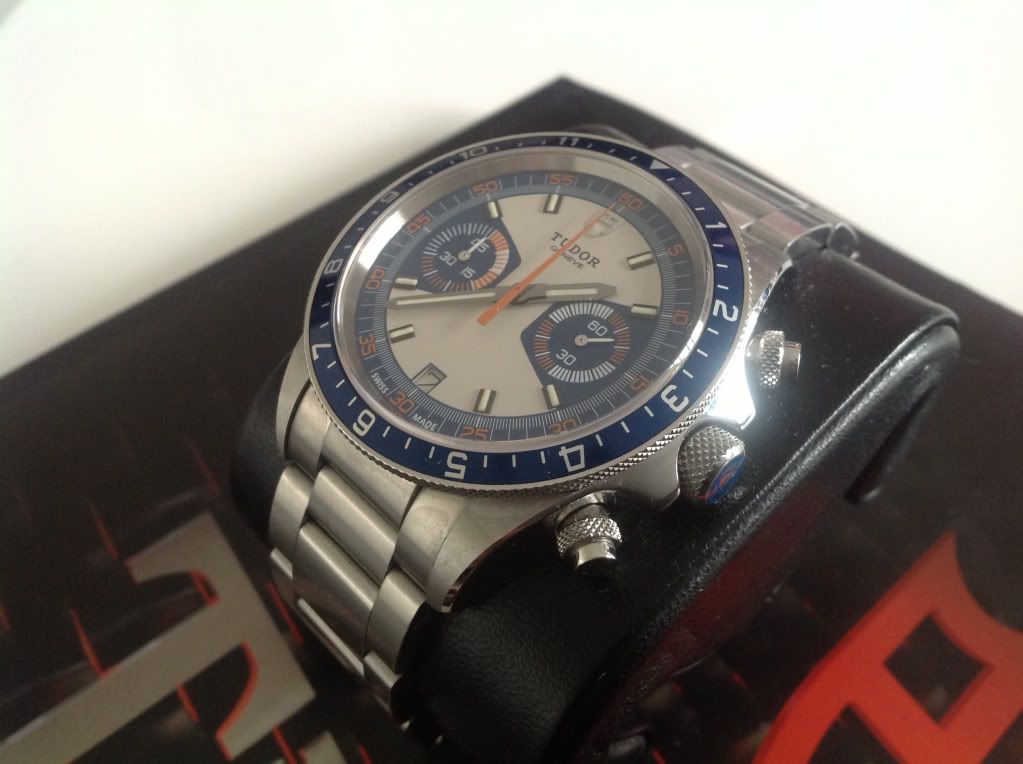 Vorige week Donderdag ben ik teruggekomen van een paar dagen vakantie in Zwitserland. Na wat rondkijken bij de vele juweliers in het plaatsje Interlaken, wam ik bij Bucherer terecht. Ik wilde graag wat Tudor horloges gaan bekijken, die in Nederland amper te vinden zijn. En wow, wat een collectie hadden ze daar, echt alle modellen van Tudor lagen er! Zo ook deze, en ik had deze nog niet in het echt gezien. Eigenlijk was ik gelijk verkocht. Nog wat andere modellen gepast welke ook erg fraai zijn, zoals grandtour fly-back, pelagos en black bay. Na een momentje van rust op het terras met een pilsje in de zon, de knoop doorgehakt en tot aanschaf over gegaan.