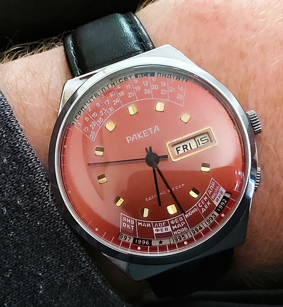 Nee hij verspringt echt van rood naar zwart… zon bijzondere plaat. Echt een gaaf horloge imo wat overal bij past.