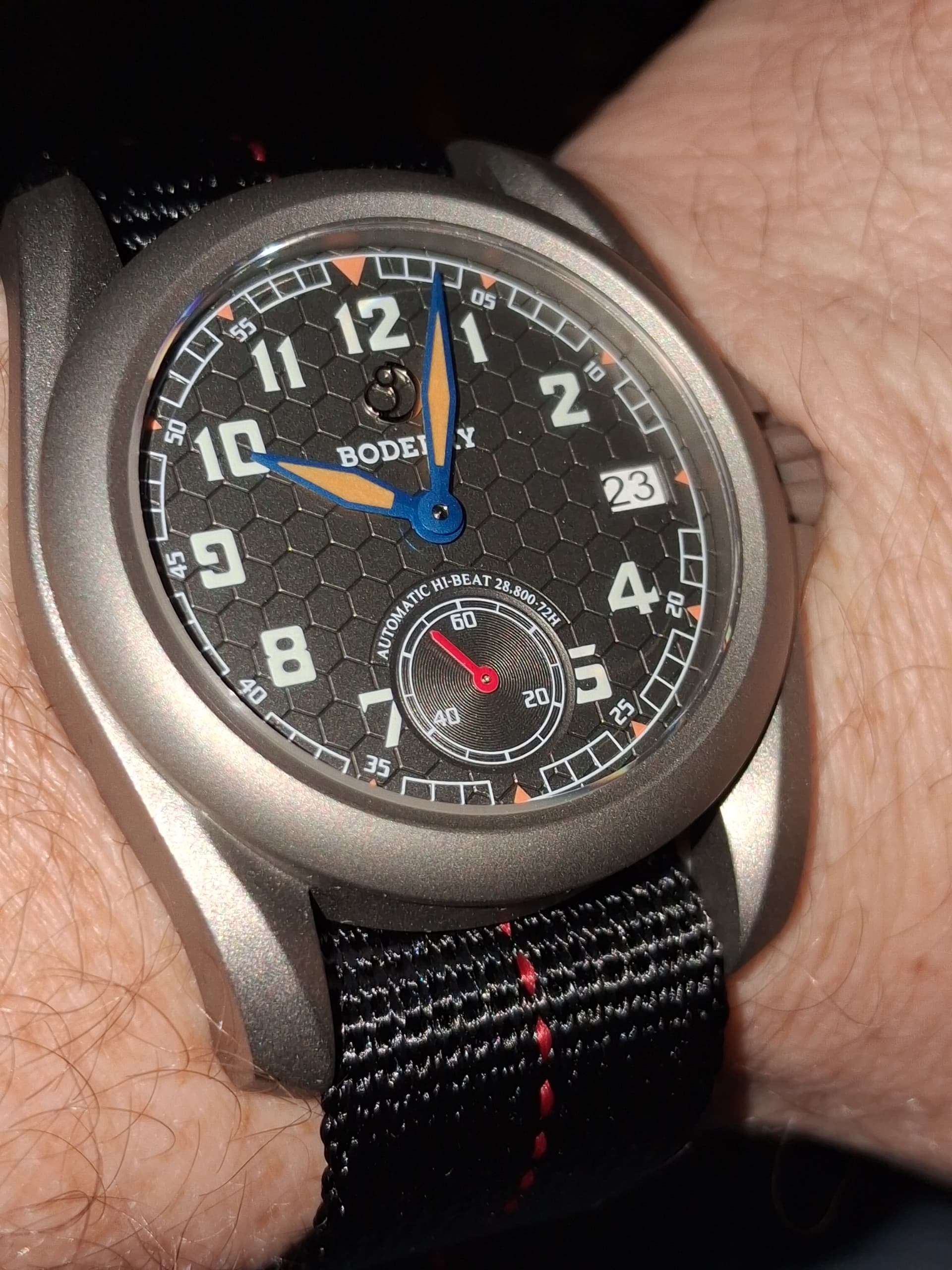 en gaan voor echt horlogemerk (dus geen Ali), dat heel goed in elkaar zit, behoorlijk ‘hufterproof’ is (kan een stoot en heel veel water hebben) en er ook nog 'ns goed uitziet, met sterkte Heuer 844-vibe (inclusief originele Monnin case); maar toch geen ripp-off: H.G.P. maakte deze horloges ook al in de '70s.