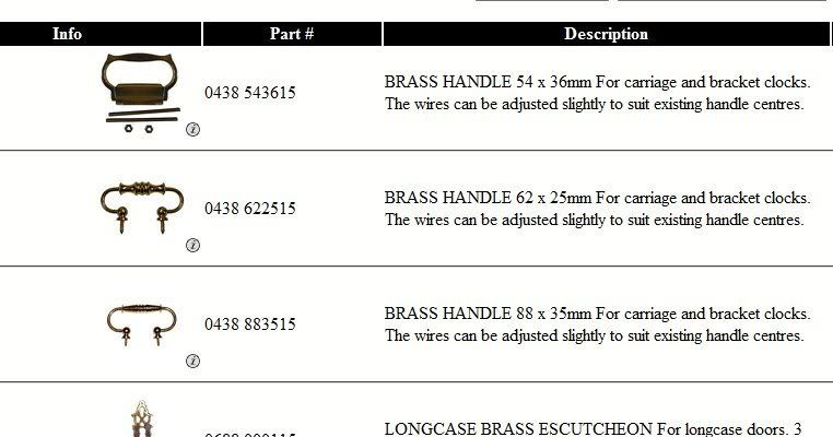 Heb niet veel verstand van klokken, maar dingen als handvatten en ander beslag, kun je vaak nog gewoon kopen bij klokken-speciaalzaken, vond deze op het internet (maar zelfs hobbyklok heeft er ook wel een paar in de katalogus) moet je wel een beetje mazzel hebben dat het uiterlijk een beetje klopt.