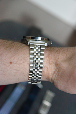 De tweede band die ik probeerde was een aftermarket Seiko Jubilee met rechte endlinks. Doordat deze visueel al wat meer massa heeft (maar niet qua gewicht