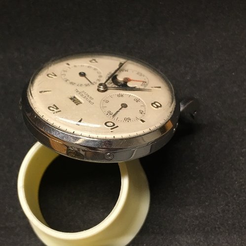 Ik verwachtte eigenlijk niet deze ooit te zullen bezitten, want ze zijn nogal zeldzaam en duur (in december typte ik dat letterlijk nog in een draadje). Toen deze kans zich voordeed, aarzelde ik geen moment en hapte direct toe. De verkoper staat bekend als zeer betrouwbaar. Gelukkig had ik enige tijd er voor al het boek van Sala over UG aangeschaft (een absolute aanrader trouwens en nu voor de halve prijs!), zodat ik kon checken of alles origineel is. Dit lijkt mij inderdaad het geval, bovendien is de wijzerplaat in uitzonderlijk goede staat! Een vergelijkbare plaat staat zelfs op de voorkant van het boek!