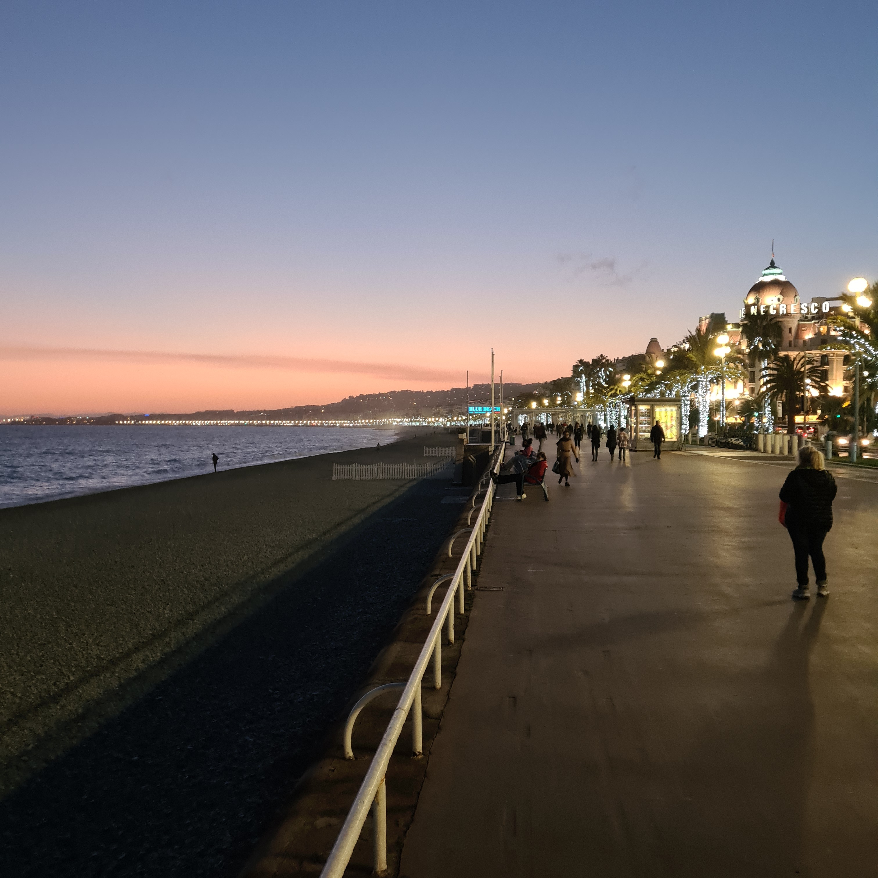 En toen maar weer terug naar Nederland, mijn budget liet nog een pizza toe, en wat te drinken, die ik kon eten aan de boulevard van Nice.