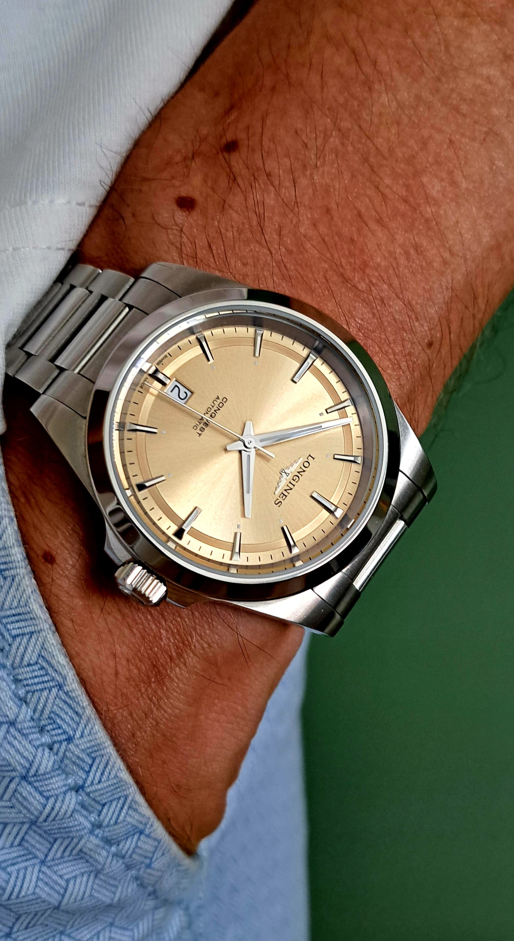 De lume op dit horloge is niet erg sterk, maar gezien de beoogde markt ook niet echt nodig. Uiteraard is wat mooi is subjectief, maar ik denk dat het longines gelukt is een mooi geheel te maken, al had ik gewenst dat de kleur van de datum disc ook champagne kleurig was. De andere kleuren zien er ook prachtig uit.