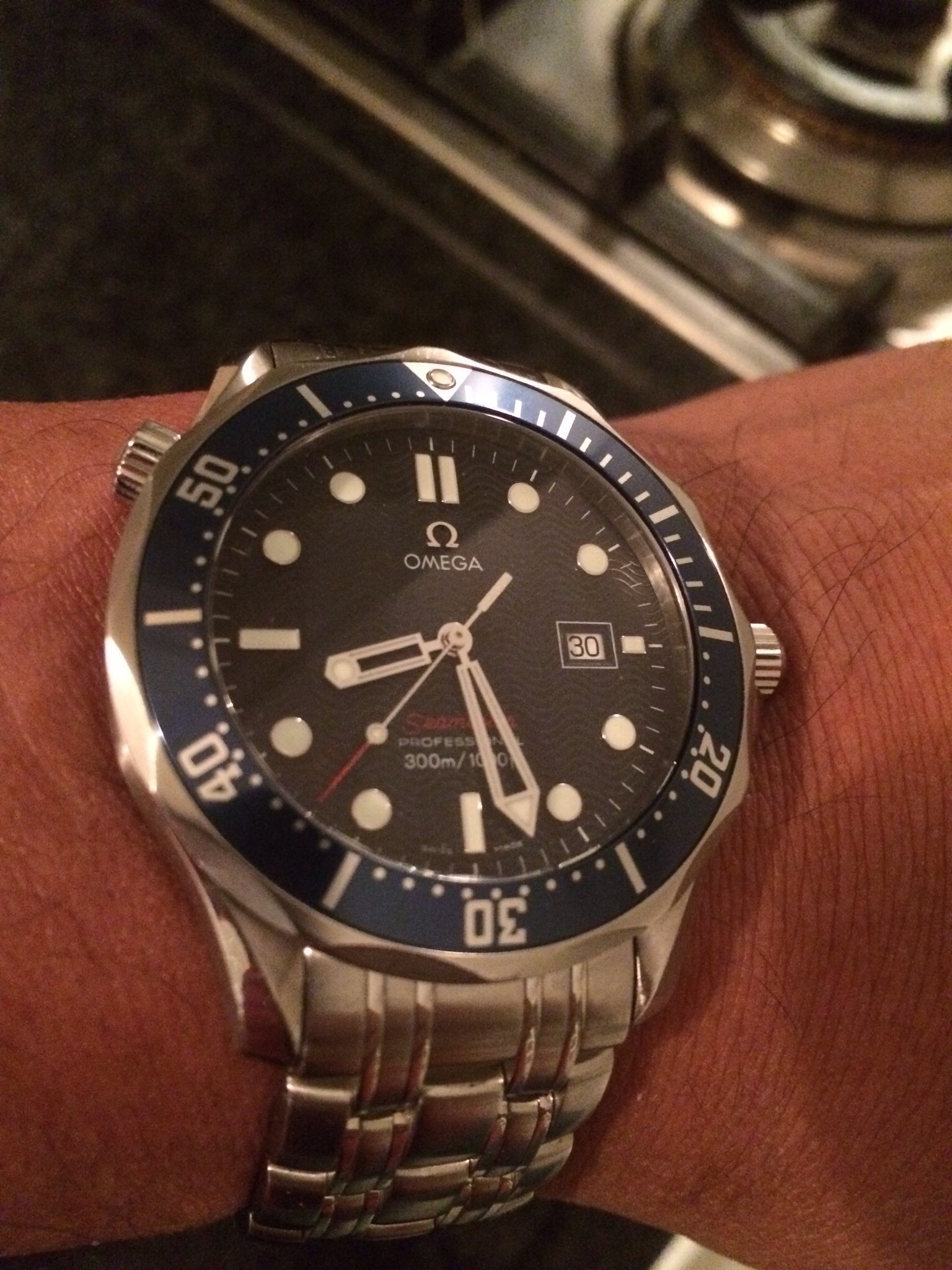 Ik zou m lekker op rubber/ nato dragen, die stalen band ziet er bij de bandaanzet wat mij betreft niet goed uit