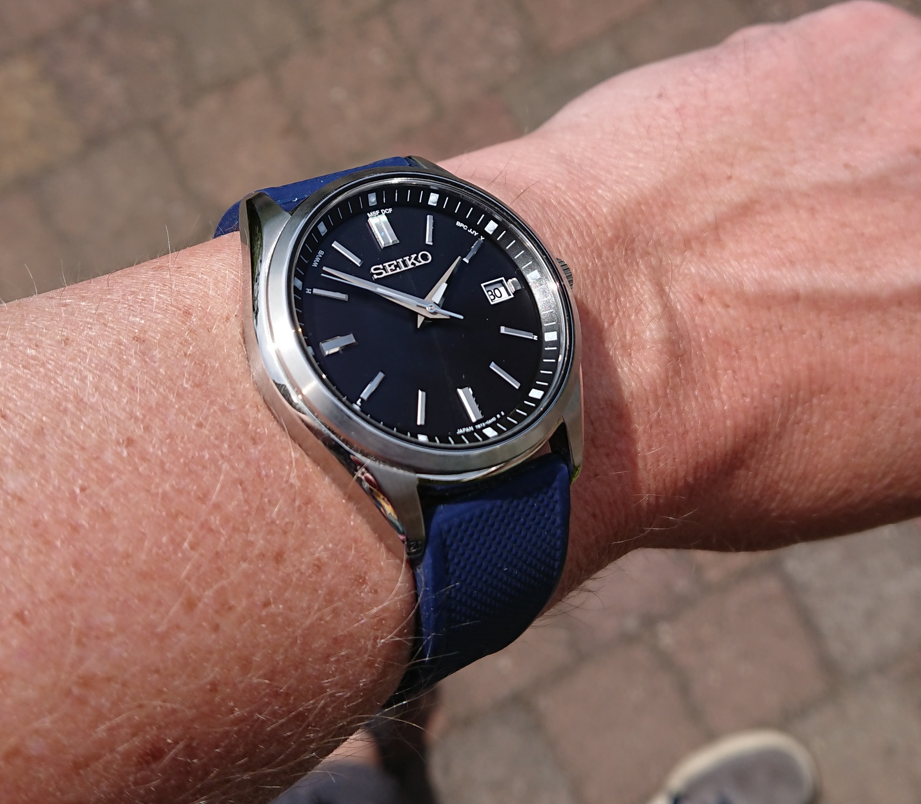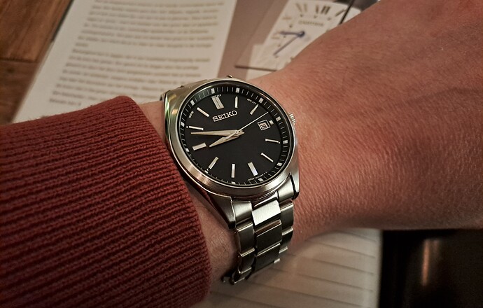 Wat Seiko dit keer ook goed heeft gedaan (althans bij mijn horloge). De wijzers tikken precies op de uurmarkeringen en vallen niet tussen wal en schip. Ze kunnen het dus wel! Volgens mij heeft Seiko de kwaliteit steeds beter onder controle. Ook vind ik de locatie van de puntjes met lume goed gekozen.