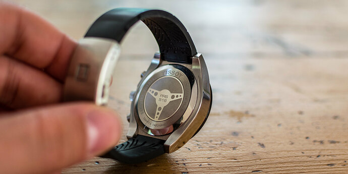 De PR serie is gestart in 1965 met een duidelijke verwijzing naar het racen. Tissot verwijst in het design naar het stuurwiel (race stuur met gaten). Bij het horloge in deze review zichtbaar op de caseback (zie foto hieronder). Ook zijn er veel banden ontwikkeld voor deze serie waarin deze “gaten” terug komen.