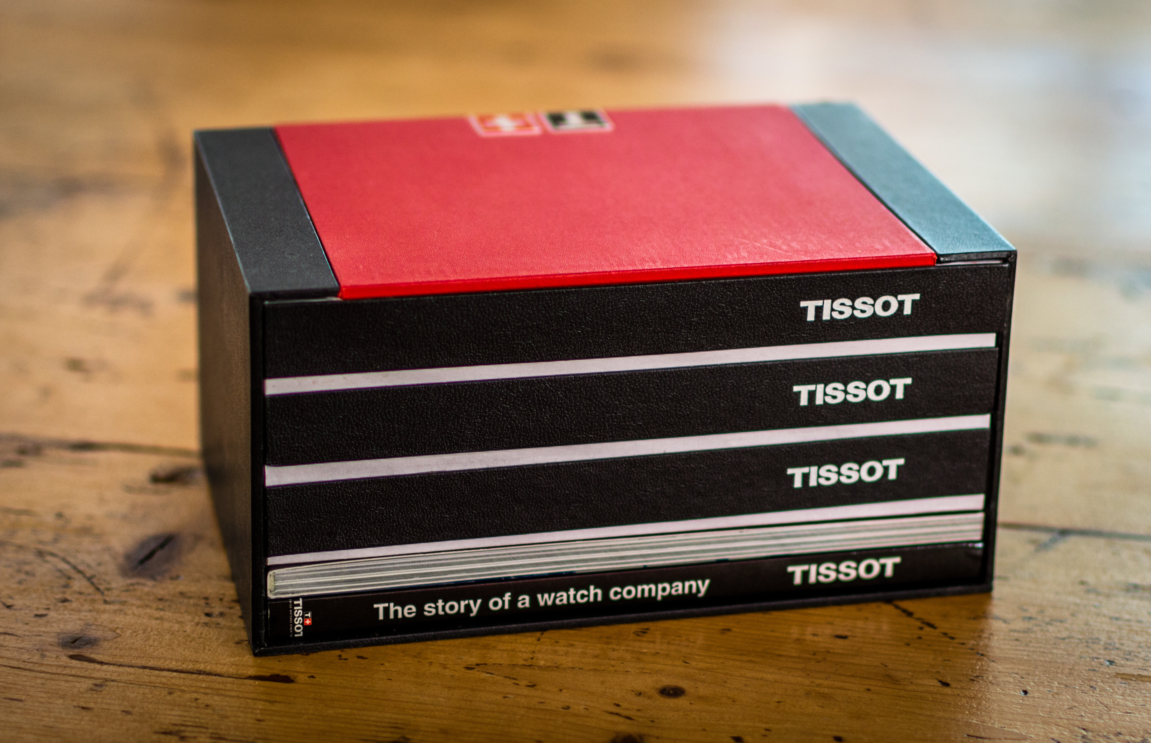 De Tissot doos is netjes en mooi ontworpen. Aan de achterzijde een boekje met de Tissot geschiedenis en aan de binnenzijde 2 vakjes met o.a. de instructies. Goed bedacht!