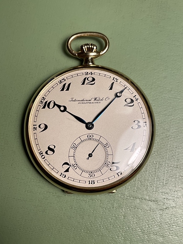 Het horloge is kwestie is een IWC gemaakt in het jaar 1928. Het uurwerk is IWC caliber 73, een werkelijkwaar schitterend gebouwd uurwerk met een hoog afwerkingsniveau. De kast is gemaakt van 14 karaats geelgoud.