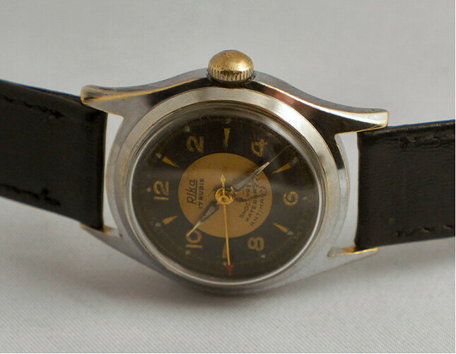 En dan: Mijn onlangs verworven Rika. Geboren in het begin van de jaren ’50, Duits fabricaat, uit de hoogtijdagen van de Zwitserse en Duitse mechanische horloge industrie waar vooral in de Zwitserse Jura en de omgeving van Pforzheim in Duitsland vele honderden grote en kleine fabrikanten tezamen duizenden verschillende merken produceerden en op de markt brachten.