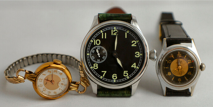 Voor mij op mijn bureau ligt een wat klein uitgevallen vintage horloge. Het roept enkele interessante gedachten bij mij op. Omdat ik toch al van plan was om weer eens een stukje te maken voor het Forum, ga ik proberen die gedachten vast te leggen door het op te schrijven. Of eigenlijk in te kloppen in mijn tekstverwerker, want schrijven doet natuurlijk geen hond meer tegenwoordig. Behalve ik, want van al die vulpennen, die ik behalve horloges ook verzamel, worden er een aantal regelmatig ook nog echt door mij gebruikt. Maar daarover misschien nog eens later. Elders op het forum, bijv. in