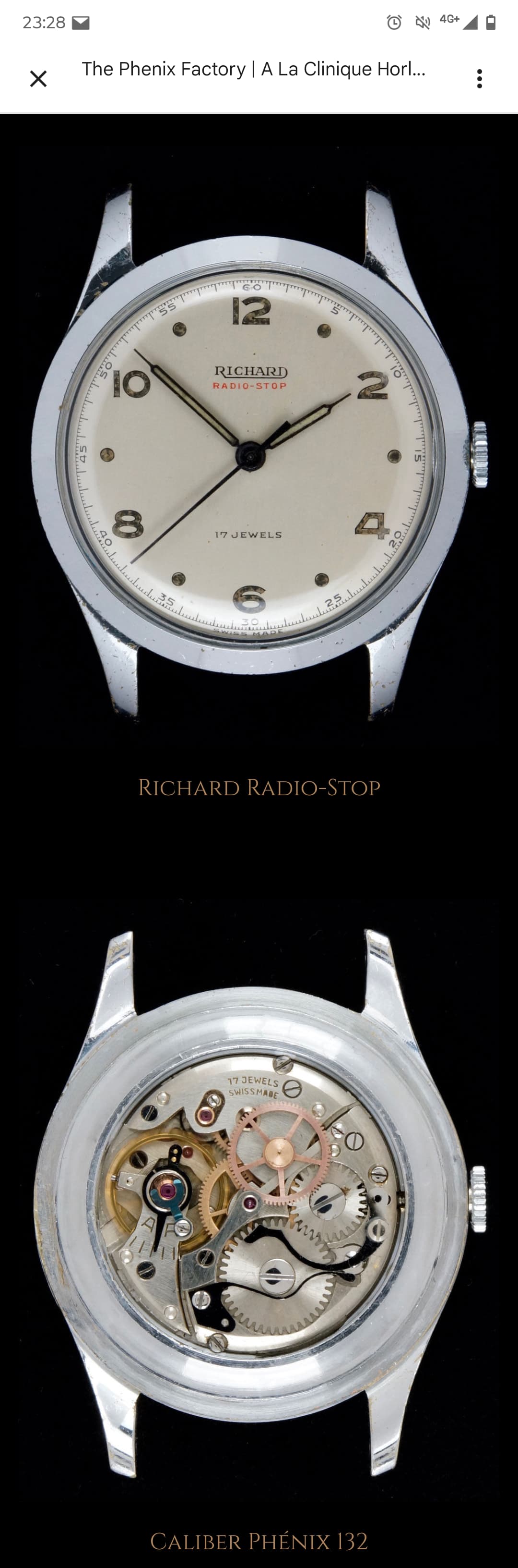 Erg grappig trouwens, gisteravond nog iets opgezocht over een Radio stop horloge. Complicatie dat je de tijd makkelijk kunt afstellen op het uur signaal van de Radio. Dat was een Richard Radio Stop. Blijkbaar met Phenix 132 kaliber. Wat volgens mij een opbouw is op de 130 in deze.
