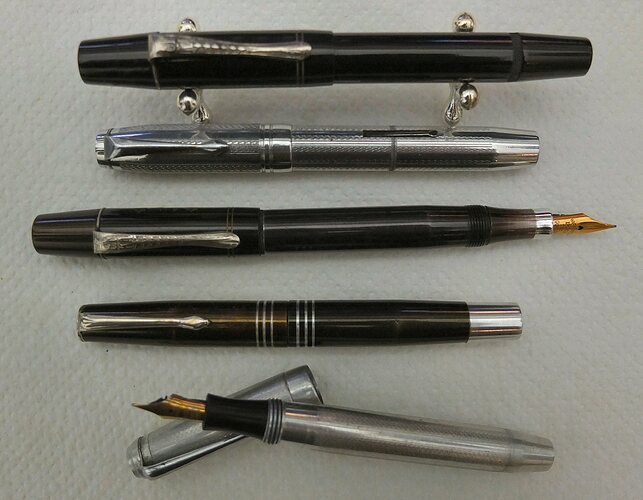Hieronder nog eens samen met de 4 andere volledig aluminium vulpennen uit mijn collectie.