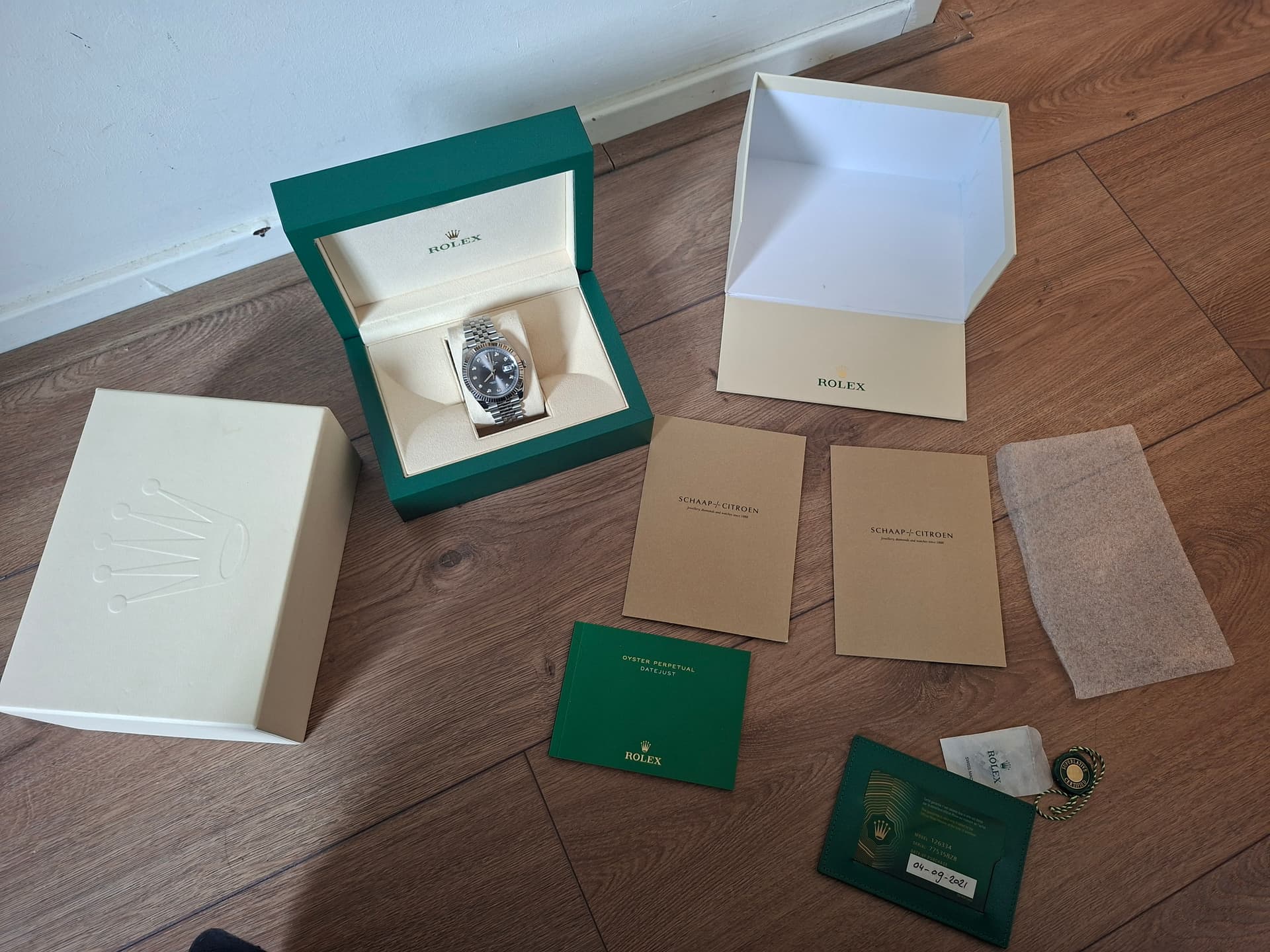 Merk en model: 126334 geleverd met diamanten plaat.