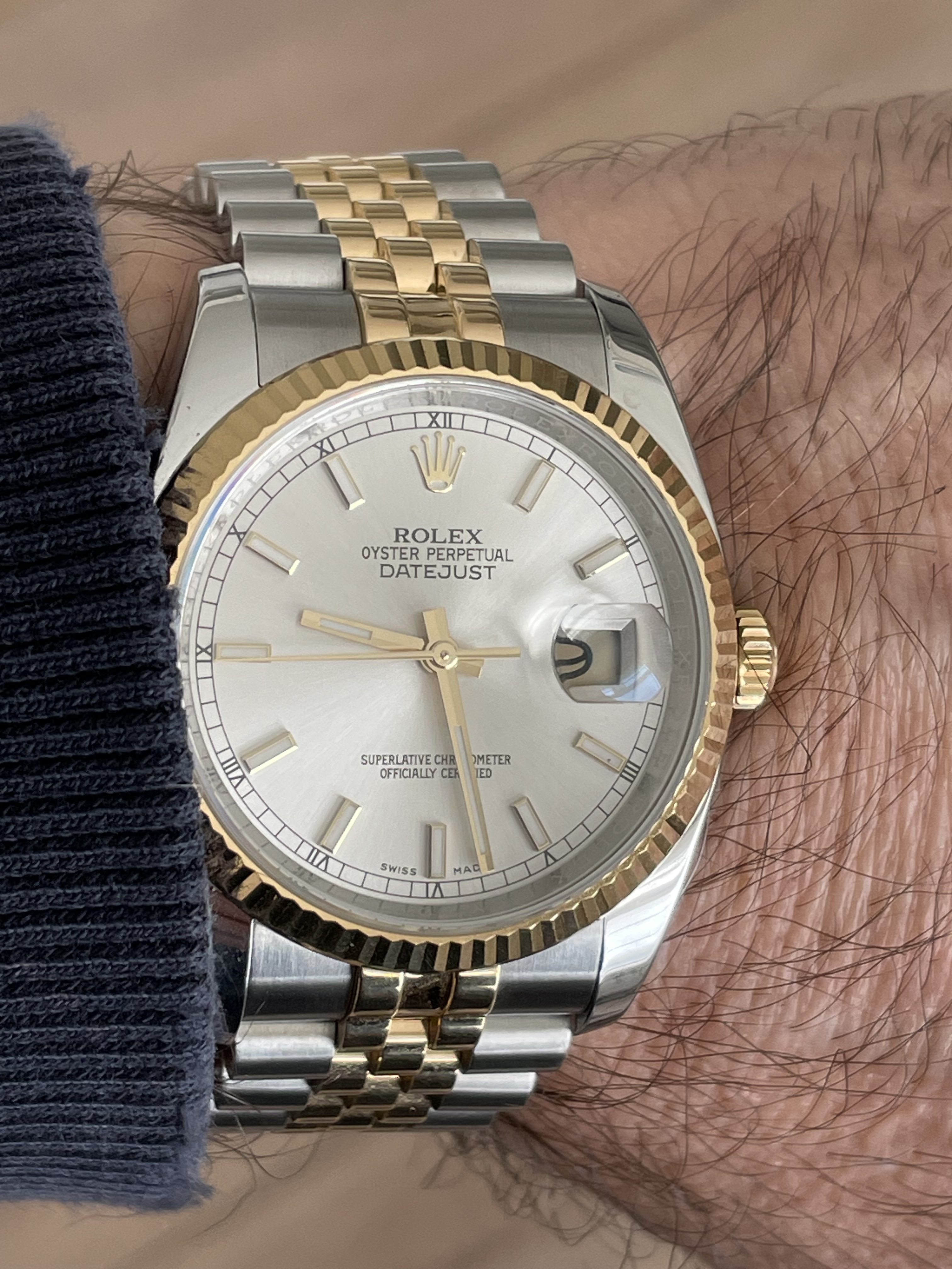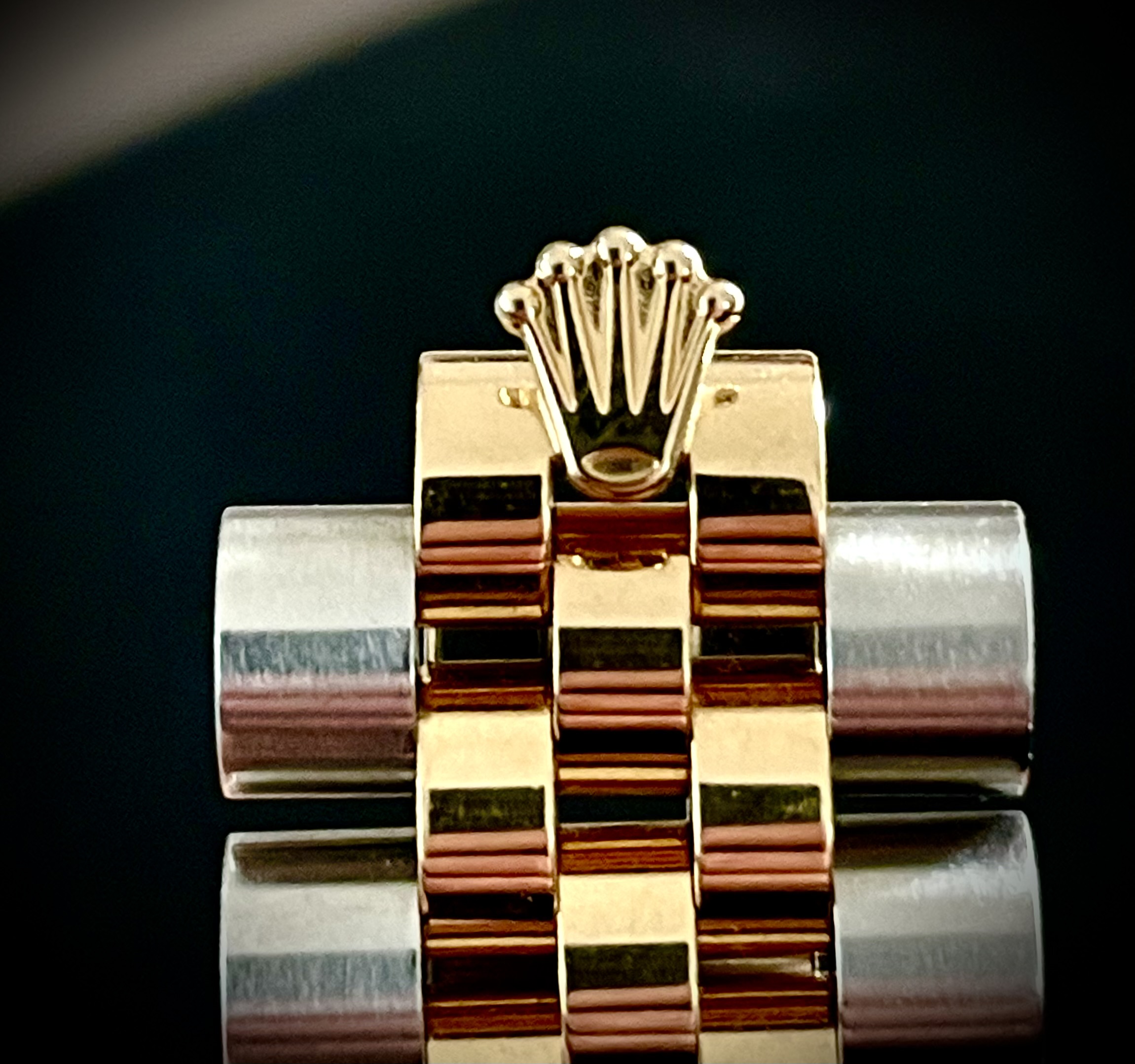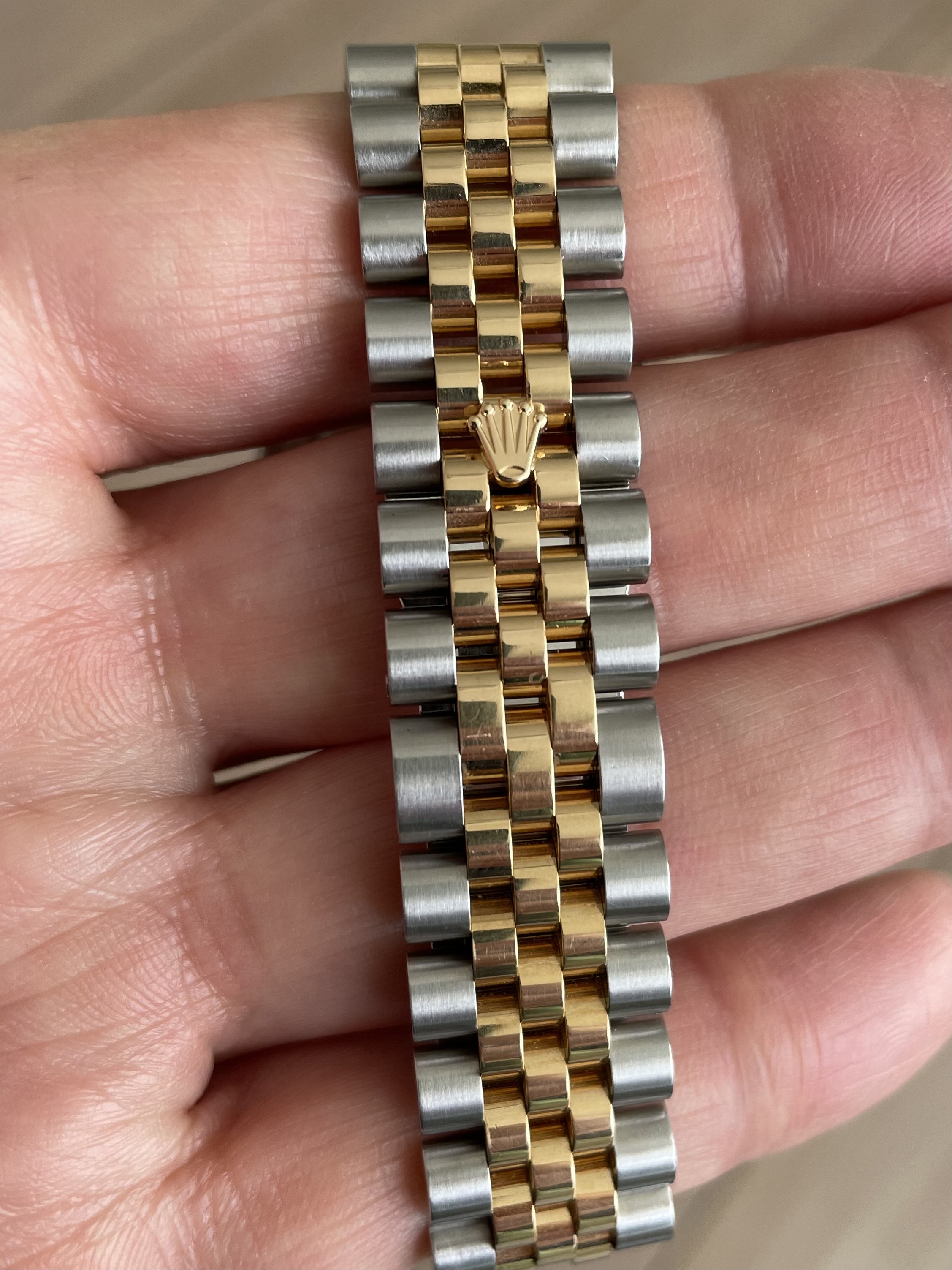 voor deze mooie datejust two tone uit 2017 met de begeerlijke hidden clasp en solid links en end links in deels 18 karaat geel goud.