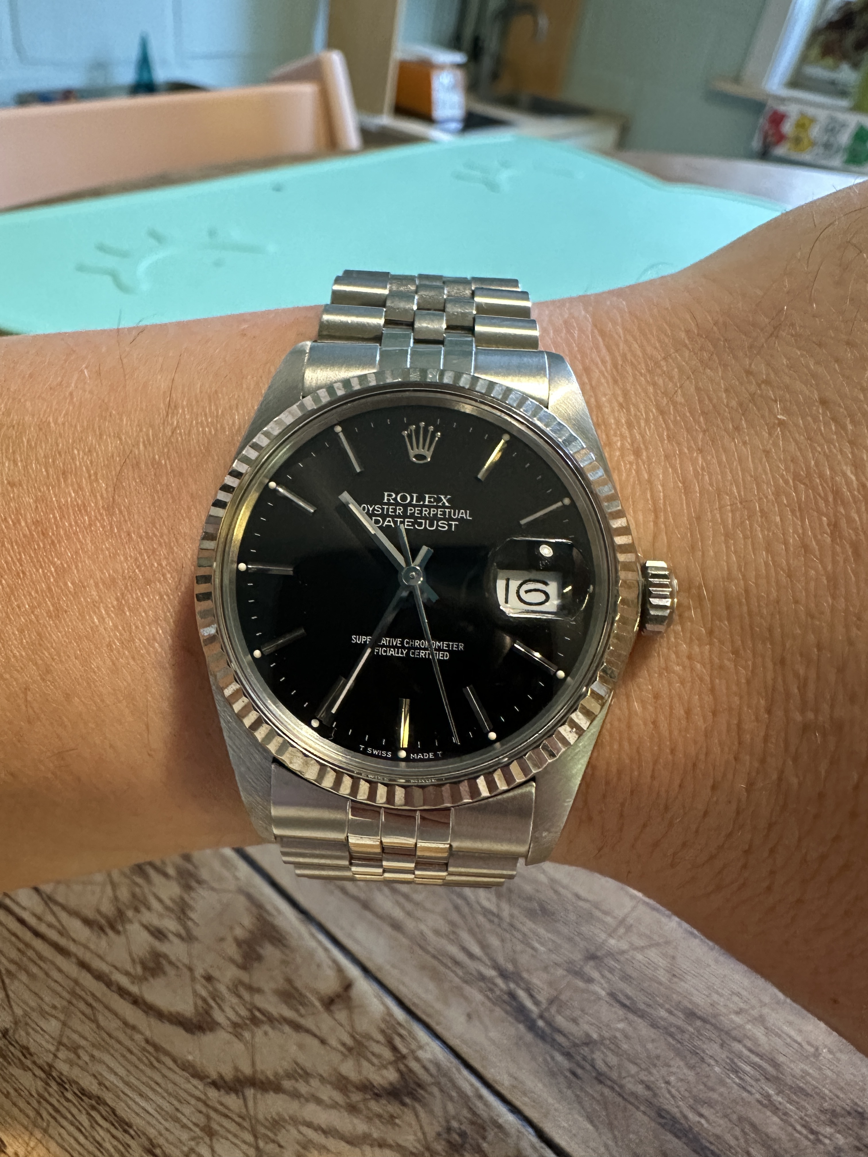Met enige twijfel zet ik mijn Rolex Datejust 16014 met prachtige wijzerplaat, nieuwe jubileeband en Rolex garantie tot en met april 2027. Ik heb deze aangekocht via Schaap & Citroen in augustus 2025 en sindsdien met zorg gedragen in roulatie. Spijtig genoeg is de klik er niet 100%, ik dacht dat een Datejust met zwarte wijzerplaat mij ging overtuigen maar het komt niet helemaal…