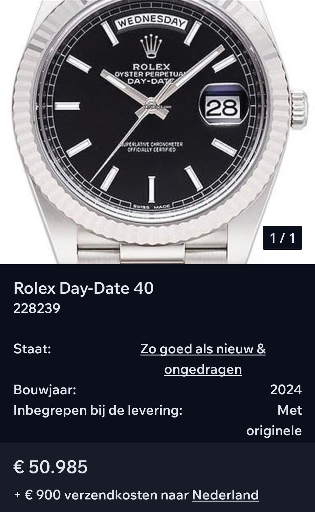Ik verklaar hierbij dat mijn vraagprijs niet hoger is dan hetgeen ik er zelf voor heb betaald danwel waar ik het voor heb ingeruild, als ik het horloge minder dan 6 maanden in bezit heb.