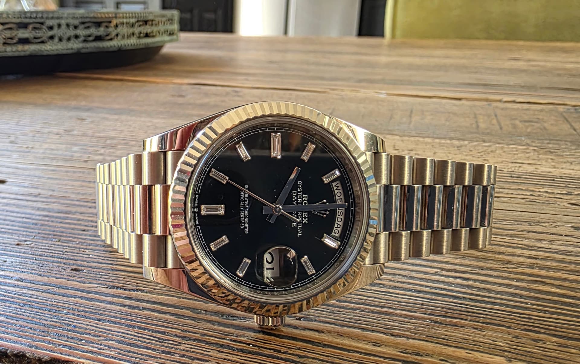 Merk en model: Rolex Daydate 228239 olijfgroen