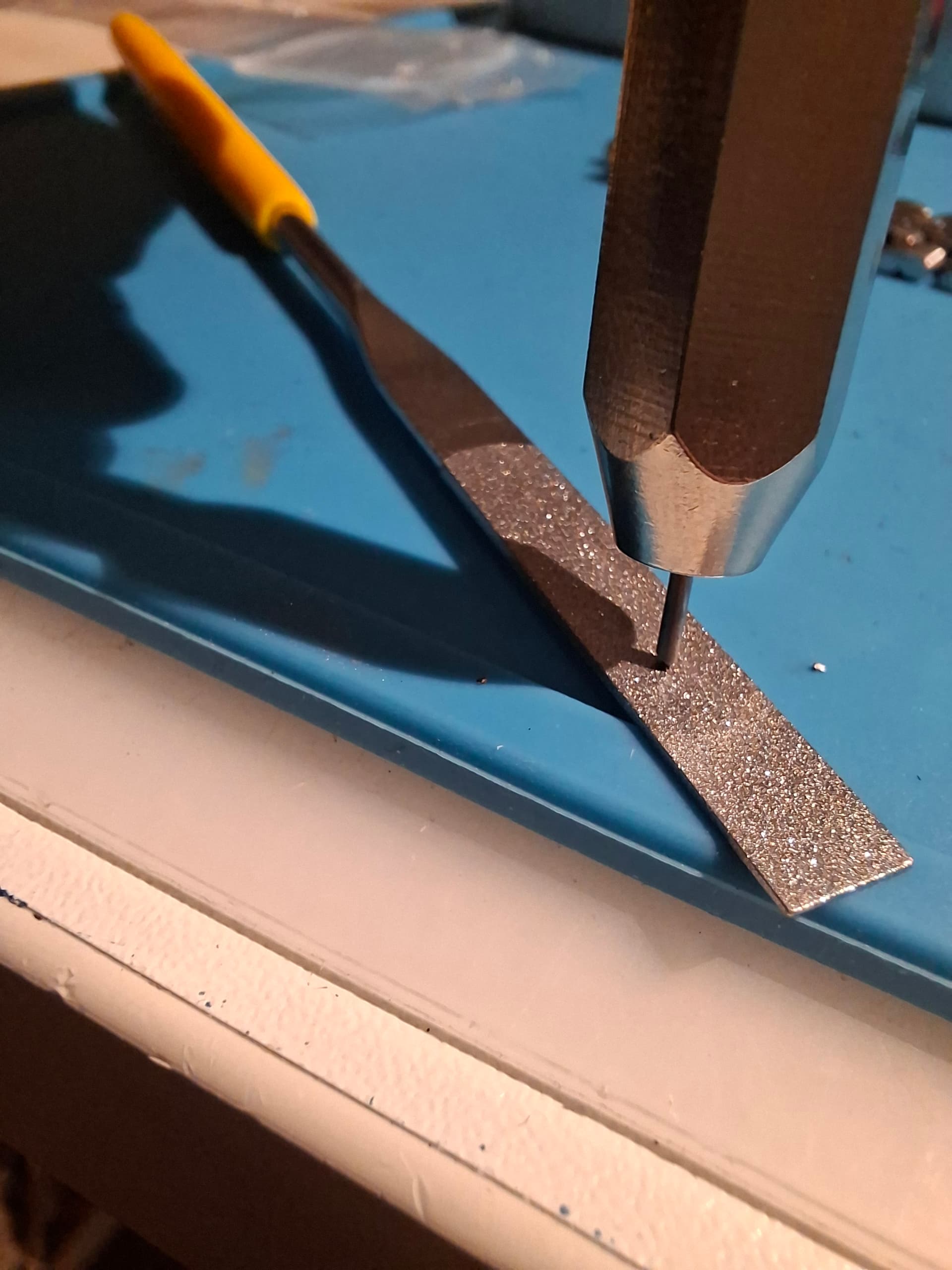 Nieuwe op maat maken en het kopje plat vijlen (zie je aan de zijkant van de band).