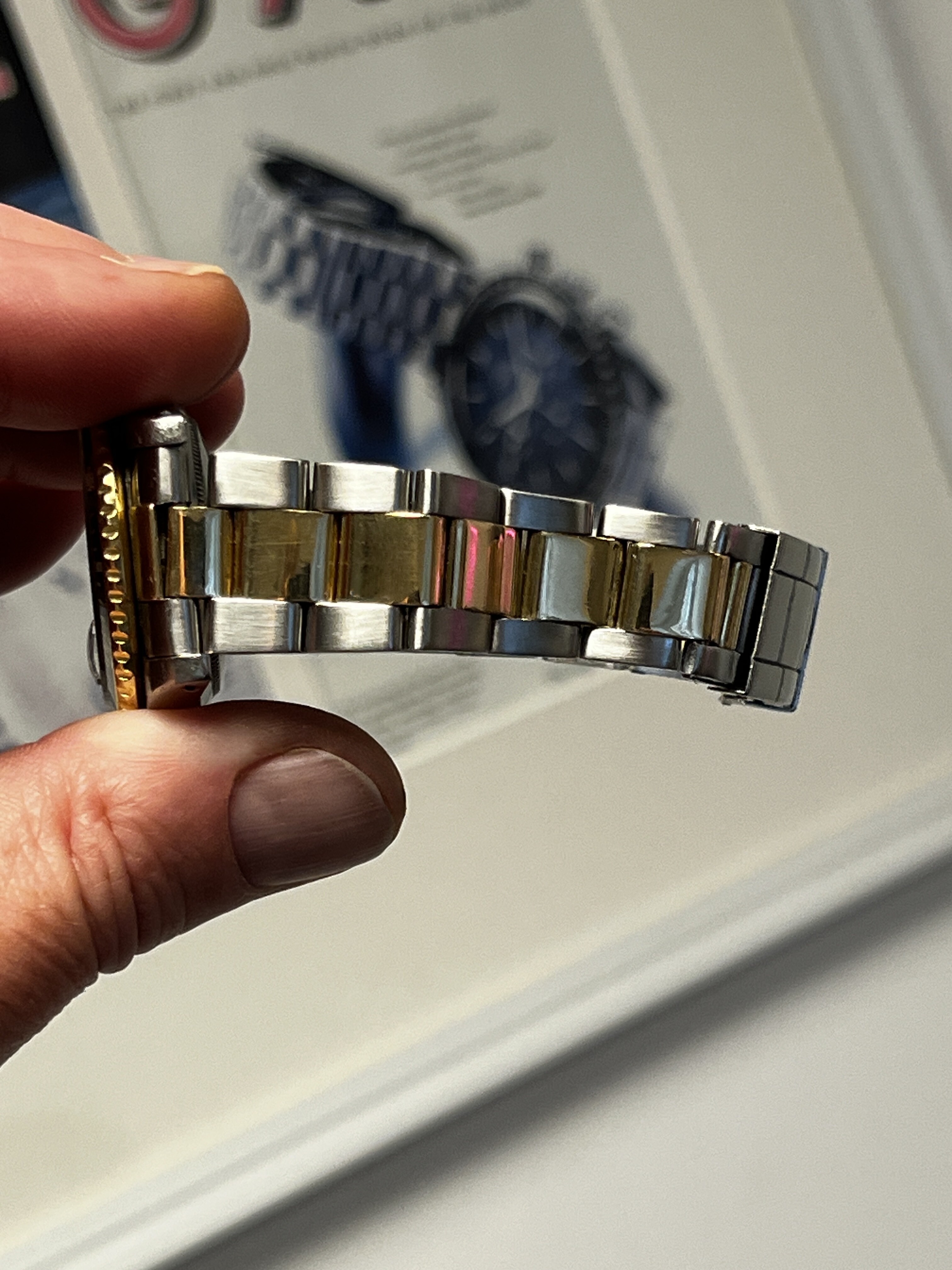 Voor het totale plaatje die was de band. Heb er niet hele duidelijke fotos van helaas. Rolex oyster two-tone met rek, sluiting kapot en en nog een paar extra inspanningen