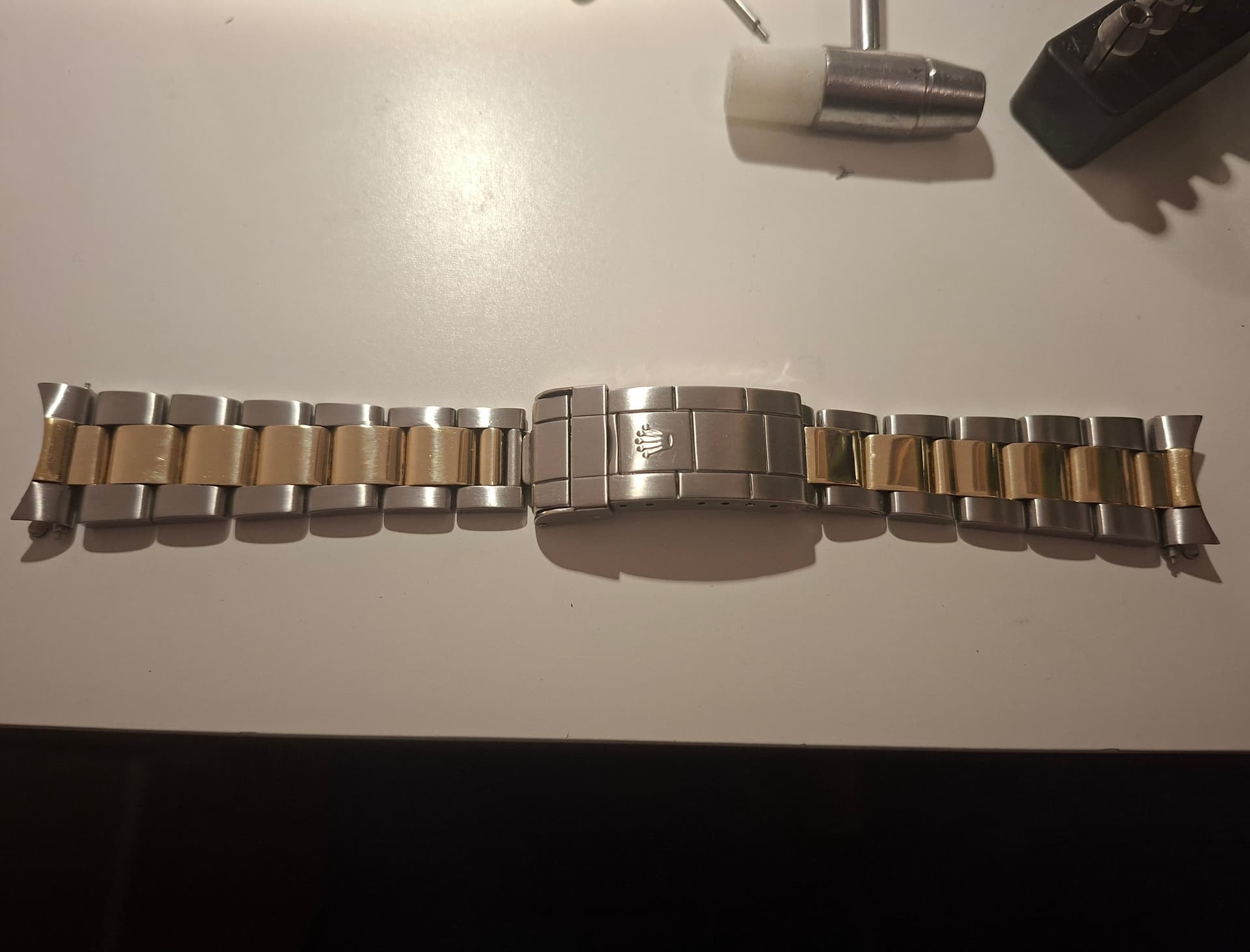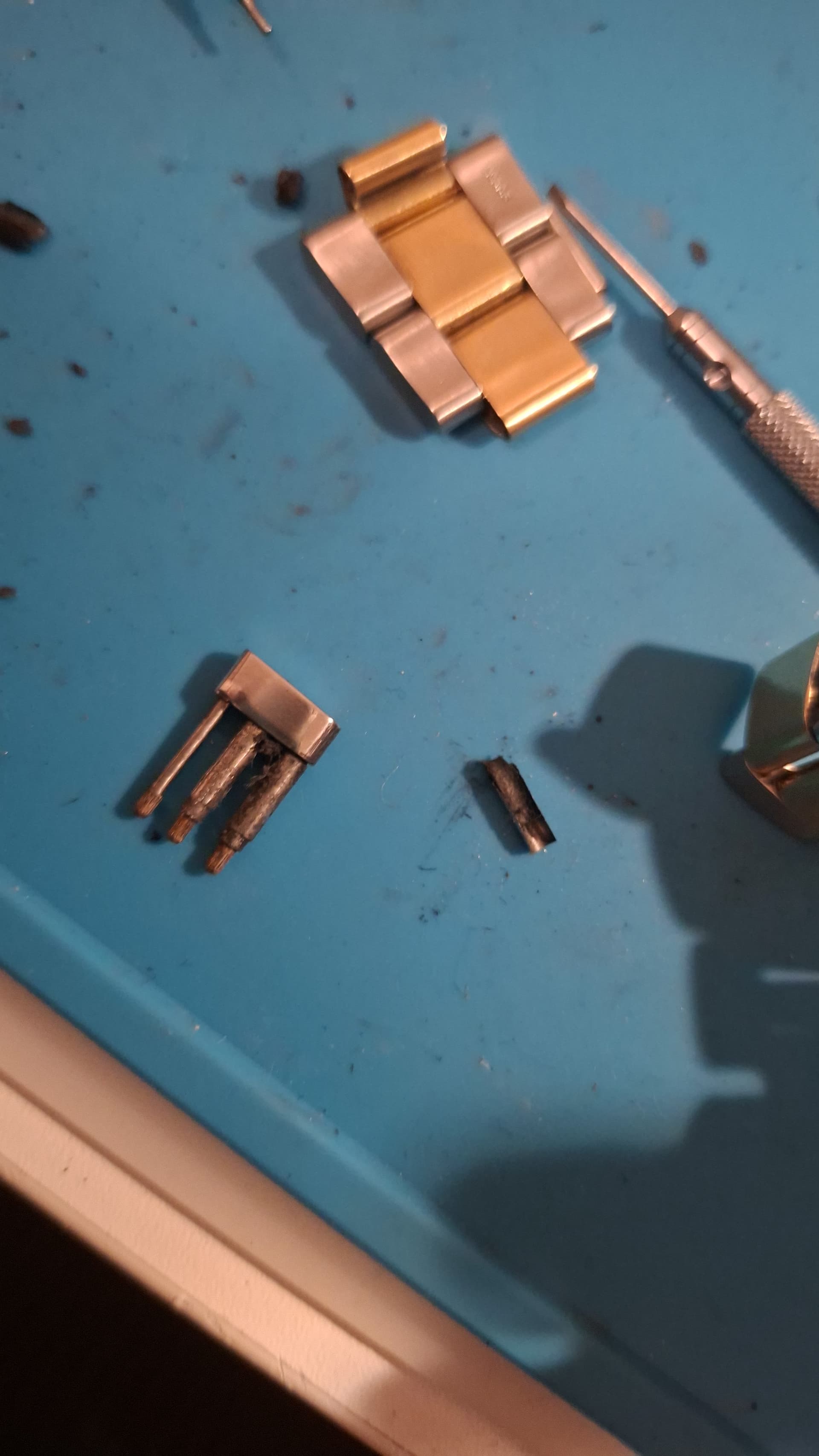Laat avondje😄 buisjes versleten in deze Rolex two-tone oyster band en pin gebroken in de schakel.