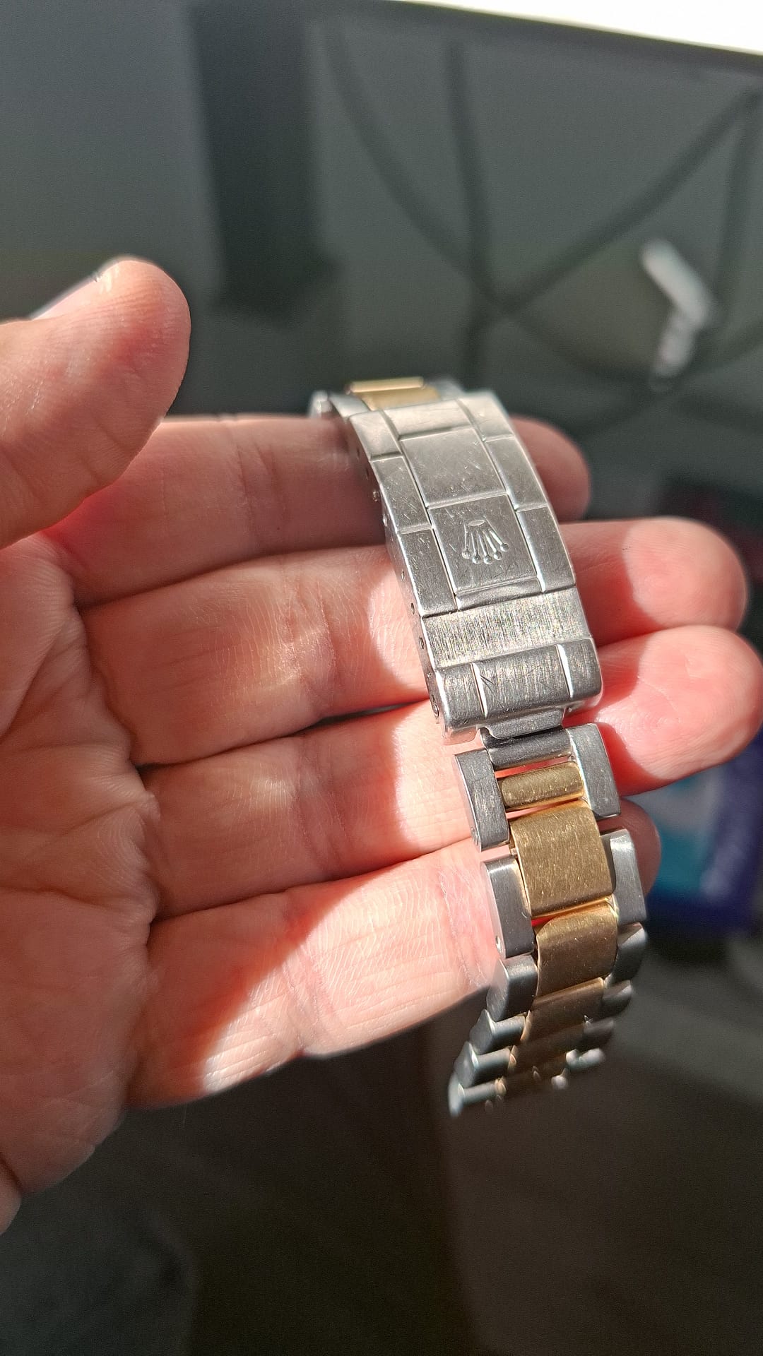 Voor het totale plaatje die was de band. Heb er niet hele duidelijke fotos van helaas. Rolex oyster two-tone met rek, sluiting kapot en en nog een paar extra inspanningen