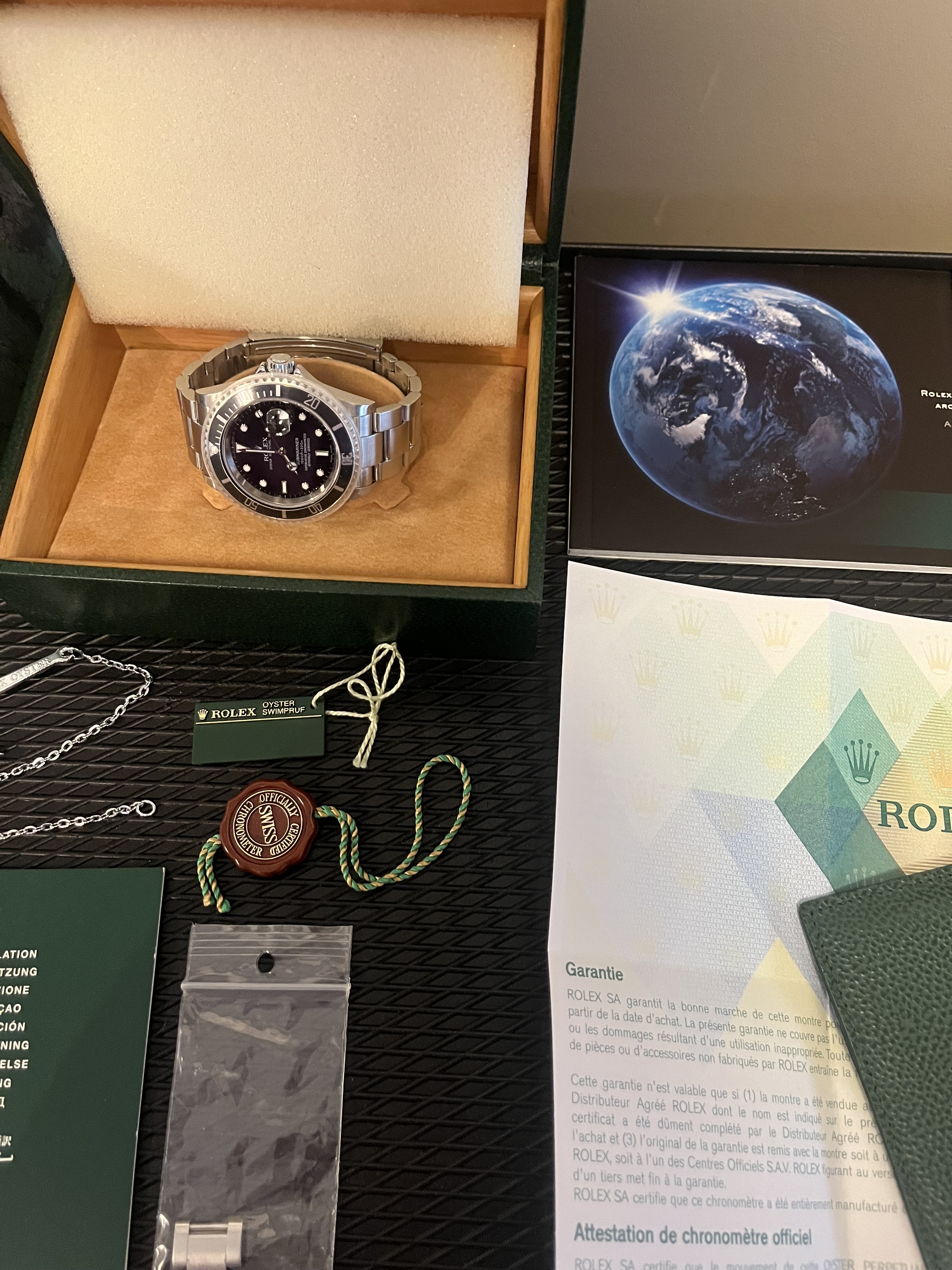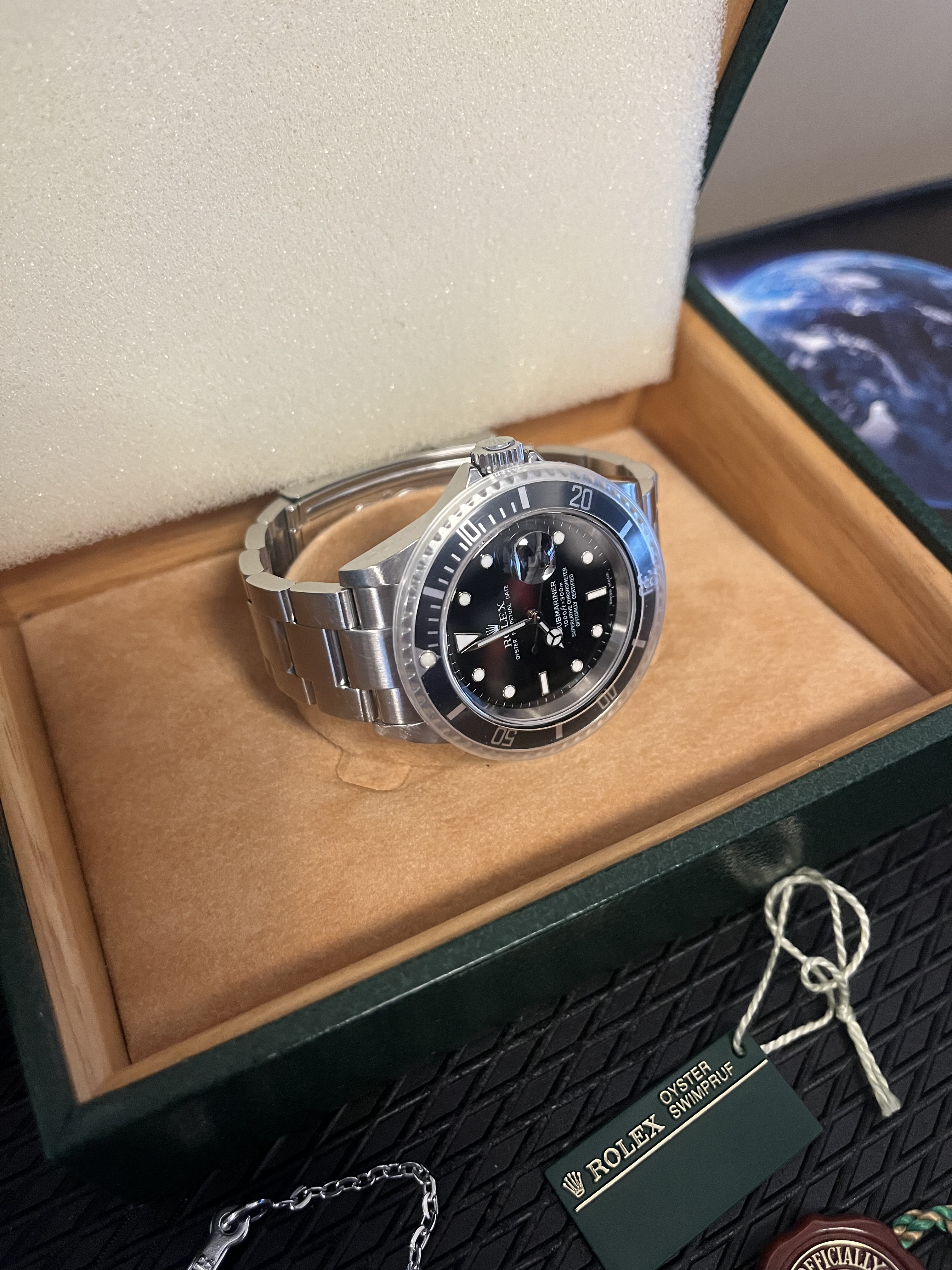Te koop mijn Submariner. Niet de eerste die ik gekocht heb, niet de eerste die ik verkocht heb en waarschijnlijk niet de laatste ook. Ik zag bij mijn vorige submariner die ik hier verkocht heb dat ik het al eens heb uitgelegd; haat/liefde. Zie ik hem bij een ander denk ik WOW die moet ik hebben! als ik hem eenmaal heb, dan is het gewoon een van de te kiezen horloges. bij deze te koop, we echt een hele mooie gave set! alles maar dan ook ALLES zit erbij! zelfs de prijslijst van toen (schrikbarend de prijzen) het horloge is ooit bij Gassan gekocht.