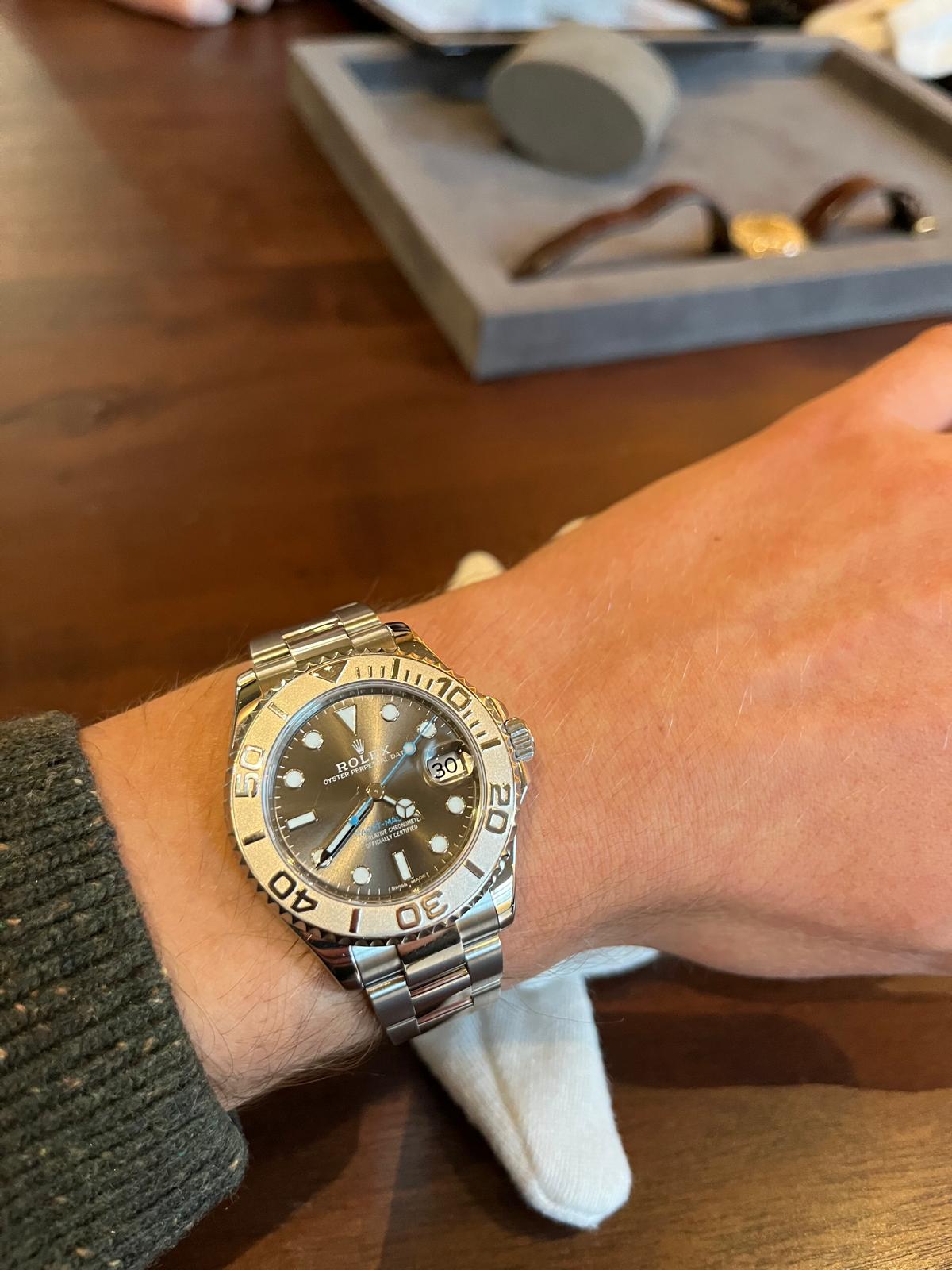 Na lang wikken en wegen, heb ik besloten een Rolex Yachtmaster met referentienummer 168622 aan te schaffen. Ja, je hoort het goed, die aparte 35 mm midsize variant met platina wijzerplaat en bezel (ook wel gekend als de ‘Charlie Sheen’ van de show Two and a Half Men’).