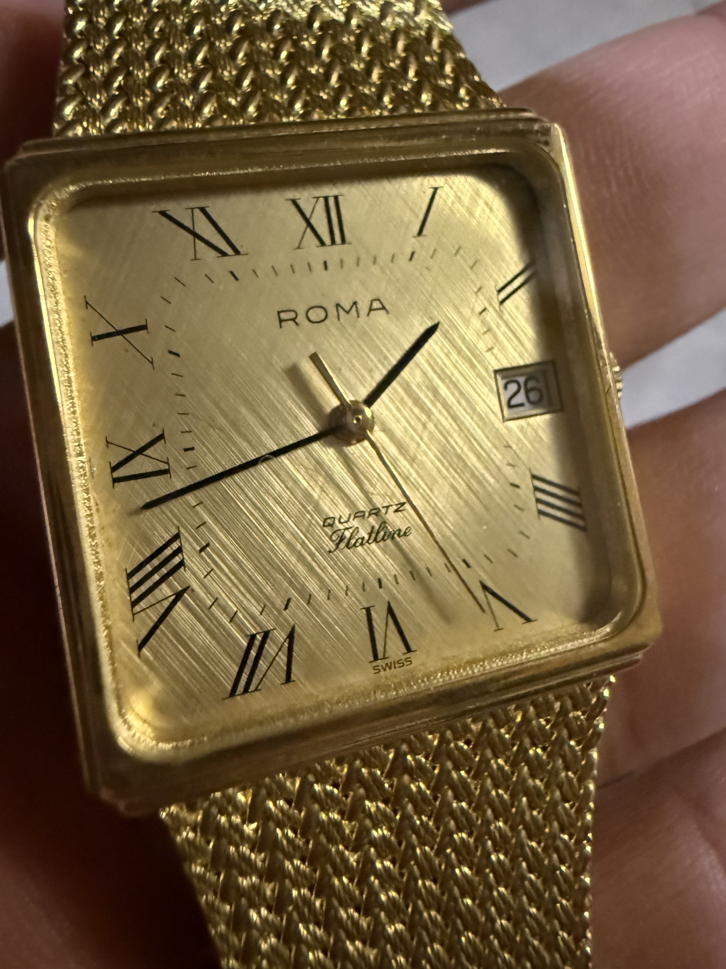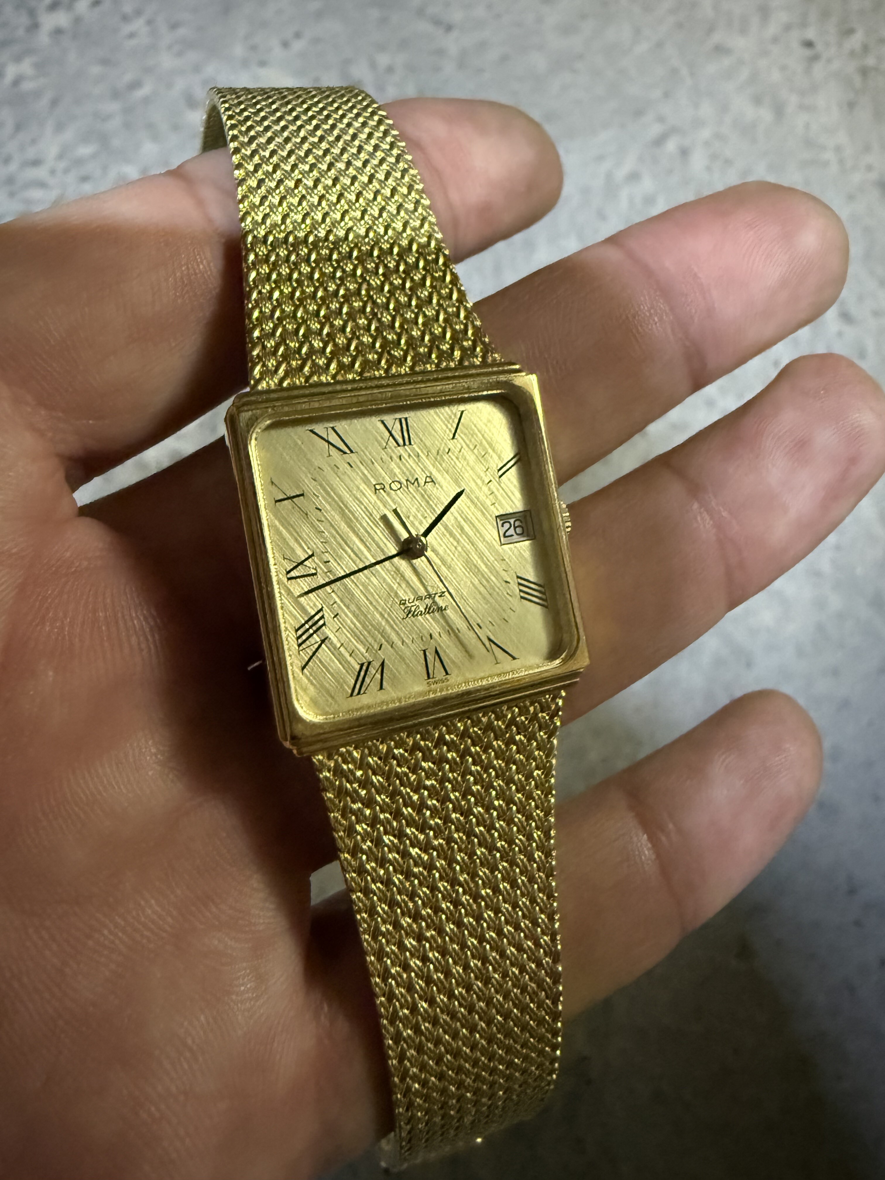 De tweede Roma “Flatline” is een ander verhaal… Deze is in perfecte staat. Wel een quartz. Mijn vader vertelde dat mijn grootvader dit gekregen had van zijn werkgever toen hij op pensioen ging.
