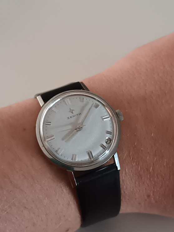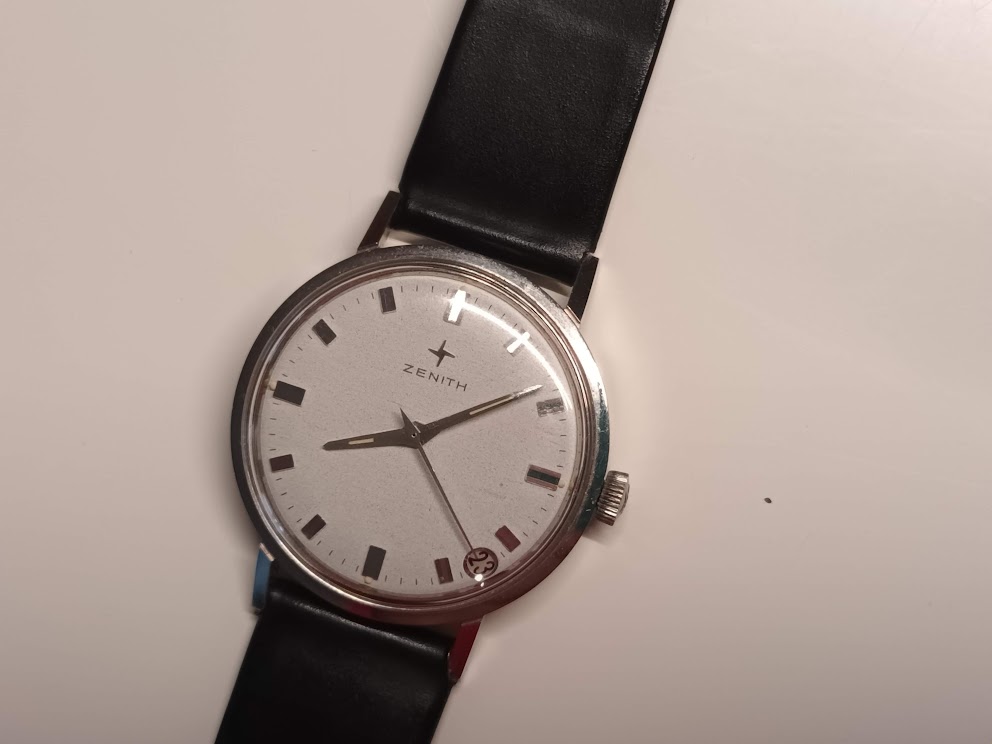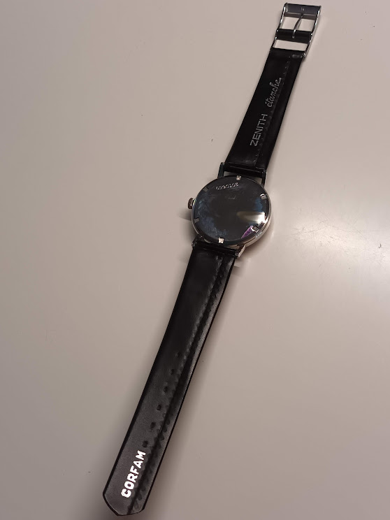 t is een eerder kleine maat met 31mm excl kroon. Binnenin zit de zenith 2452pc handopgewonden caliber. Mijn foto s zijn niet je dat, als we hem uiteen zwieren zal ik betere nemen ![]()