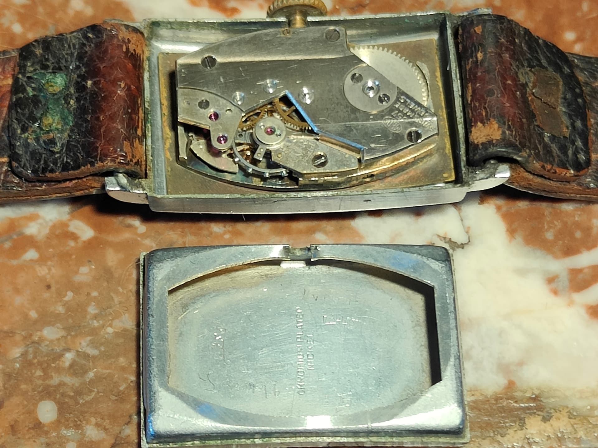 Het uurwerk is een AS-976, lijkt me. Versie mét incabloc, dus naar mijn mening ná 1945 te dateren.