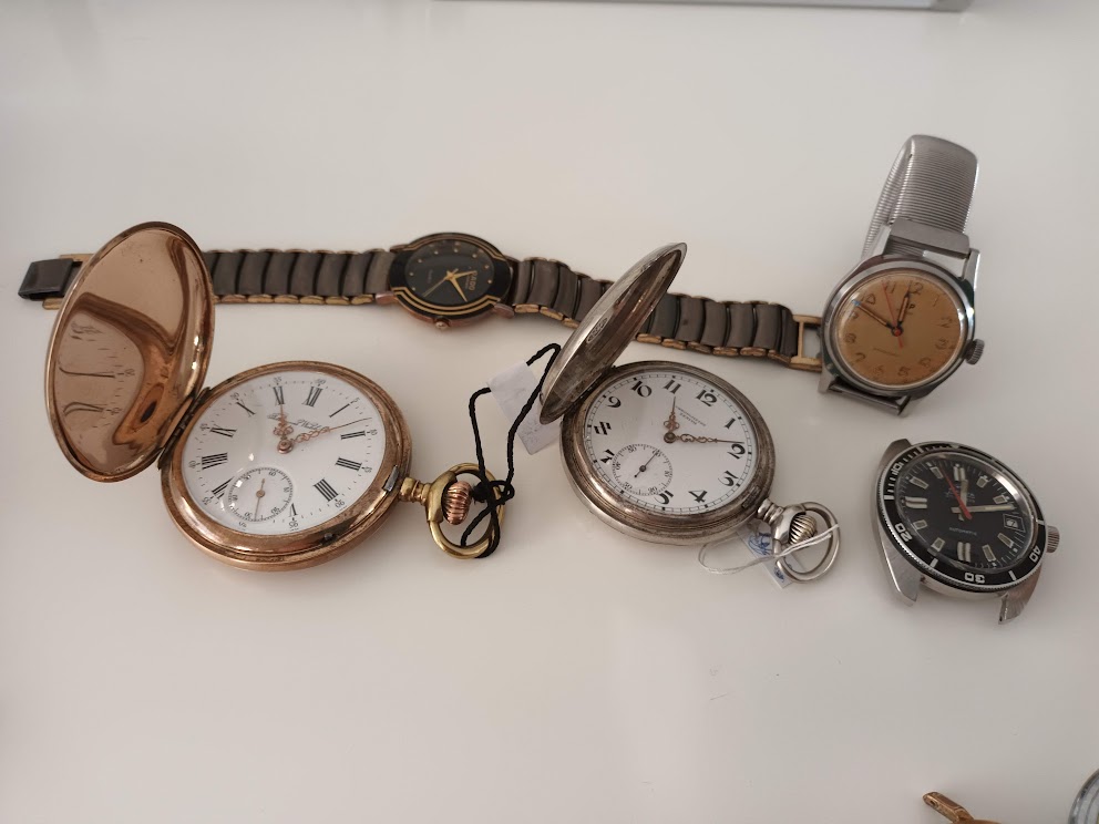 Mooie zakhorloges! Zo’n chique plaat, ze worden zeldzaam. Ik zie hier ook vaak mooie dingen passeren maar als ik dan inzoom op de foto’s is het altijd een haarlijn en een scherf uit aan de rand of de wijzergaten. ![]()