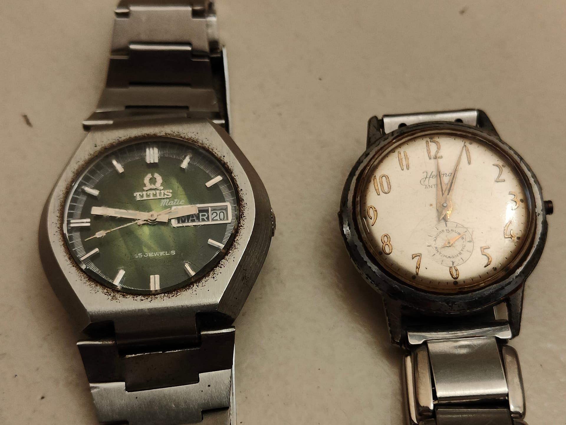 Zo langzamerhand word ik wel jaloers op jullie: wat een geweldige rommelmarkt! Prachtige horloges hebben jullie weer gevonden.